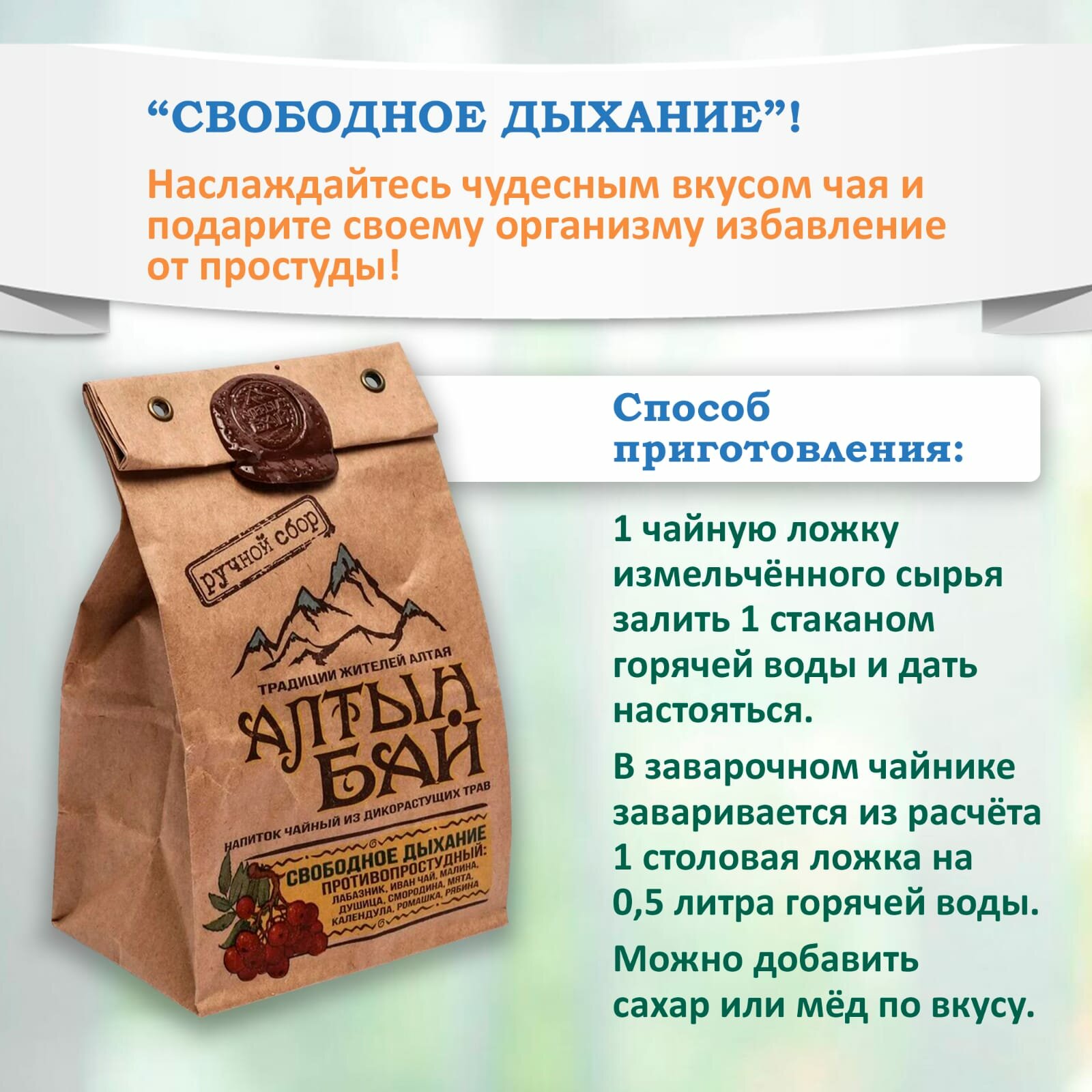 Ниже Вы можете прочитать отзывы на Чайный напиток травяной Алтын бай Свободное дыхание противопростудный, 100 г, -2 шт, ознакомится с подробными характеристиками, посмотреть интересные обзоры и фотографии на Чайный напиток травяной Алтын бай Свободное дыхание противопростудный, 100 г, -2 шт.