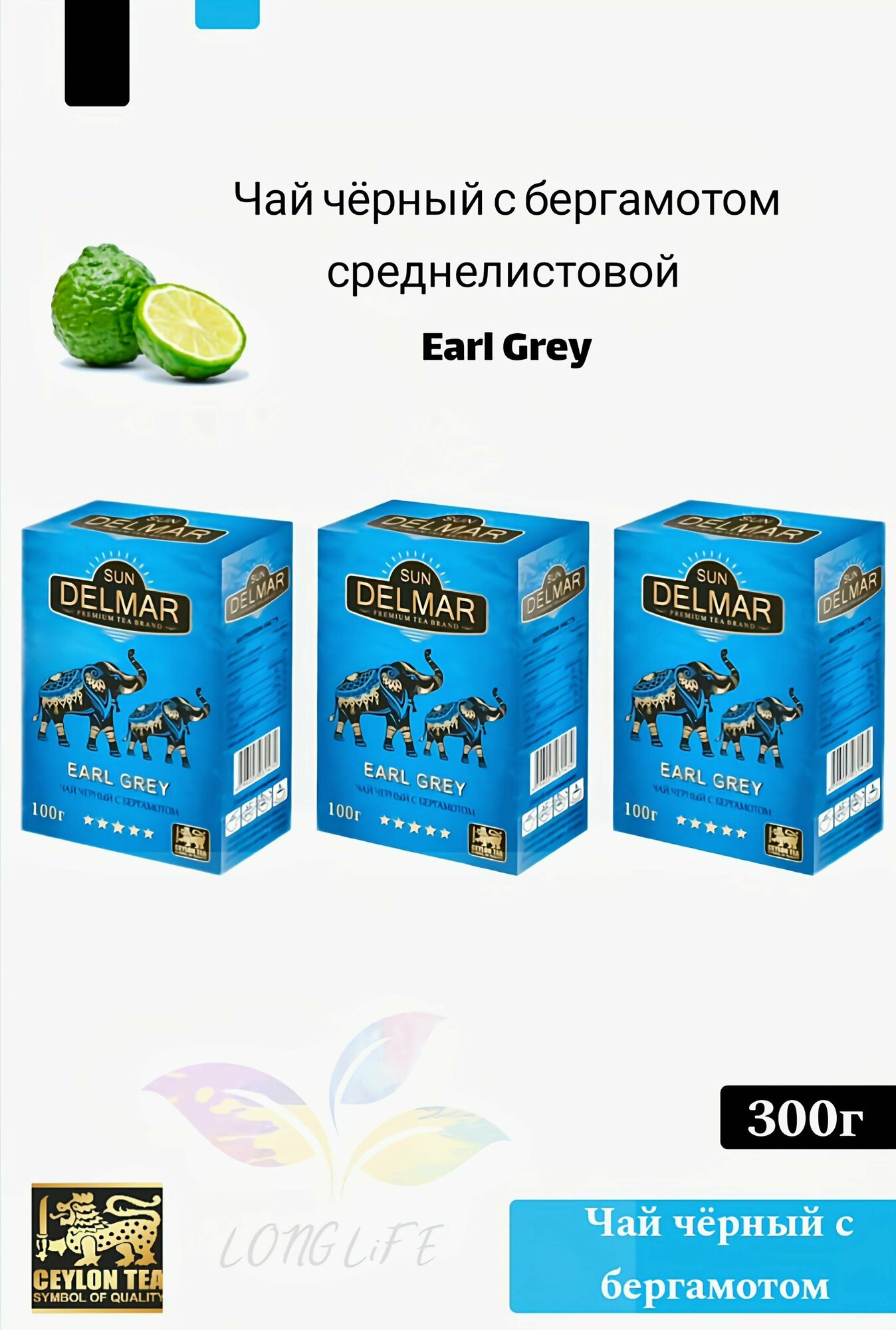 Чай чёрный Sun Delmar с бергамотом Earl Grey, 3 пачки по 100г. Среднелистовой (Цейлон) интересное: