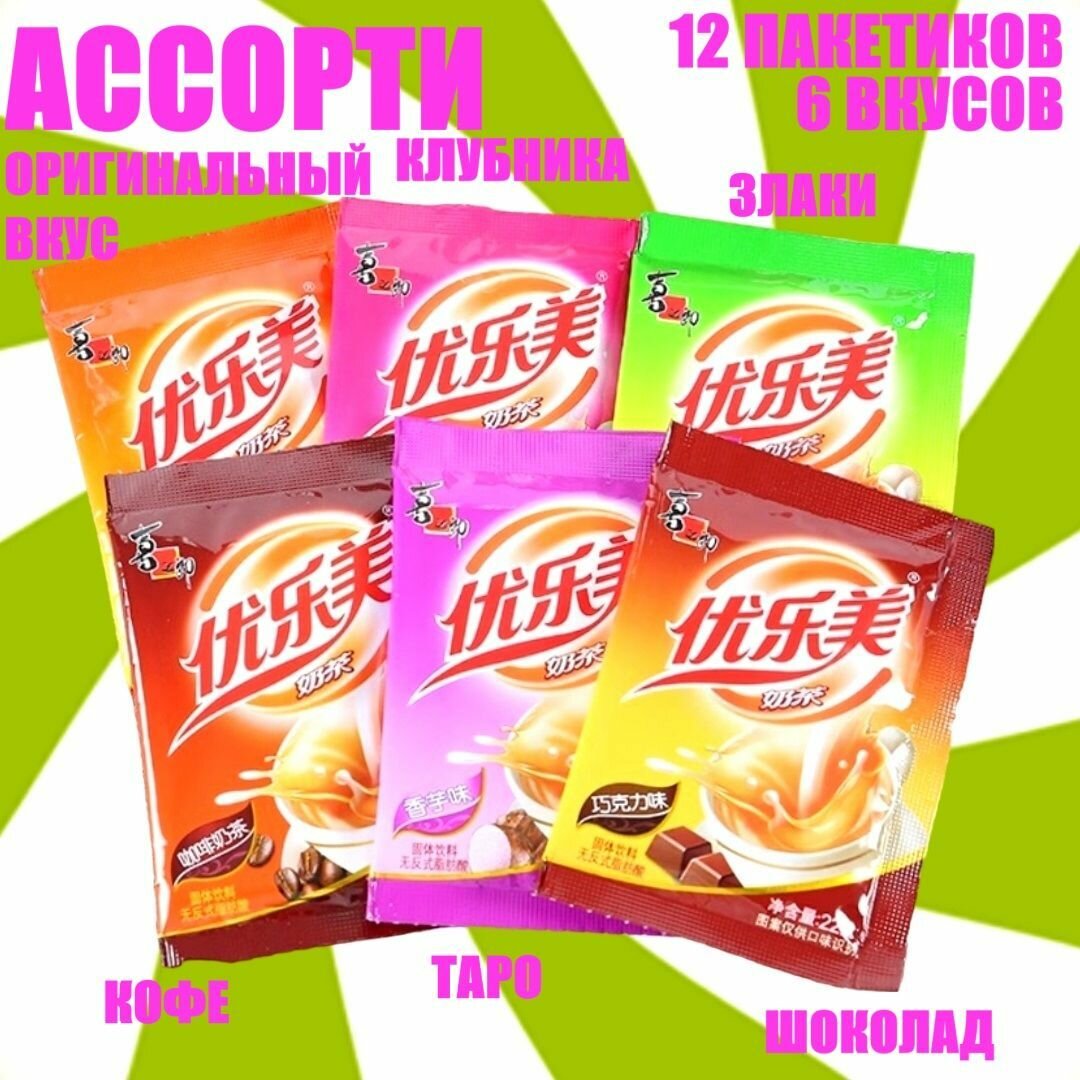 Купить Китайский молочный чай ASIAN MILK TEA YOULEMEI в пакетиках 12 штук, 6 вкусов, растворимый напиток, чай для бабл ти