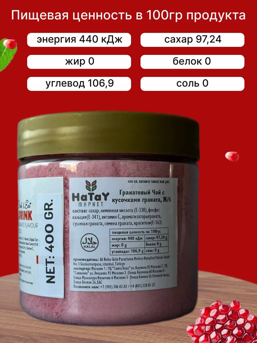 Ниже Вы можете прочитать отзывы на Турецкий чайный напиток с кусочками граната, ознакомится с подробными характеристиками, посмотреть интересные обзоры и фотографии на Турецкий чайный напиток с кусочками граната.