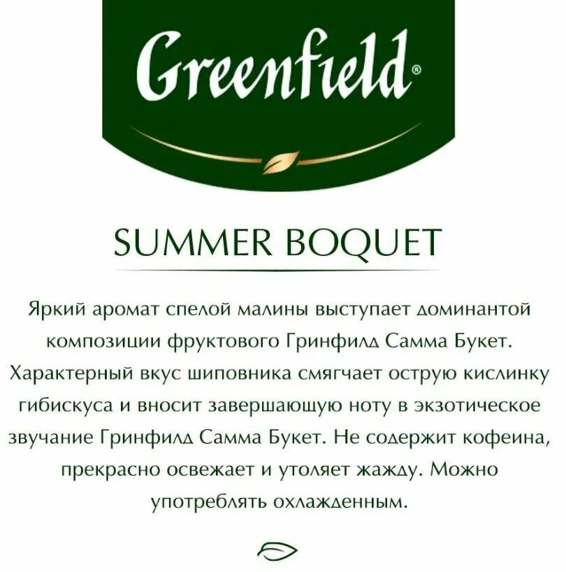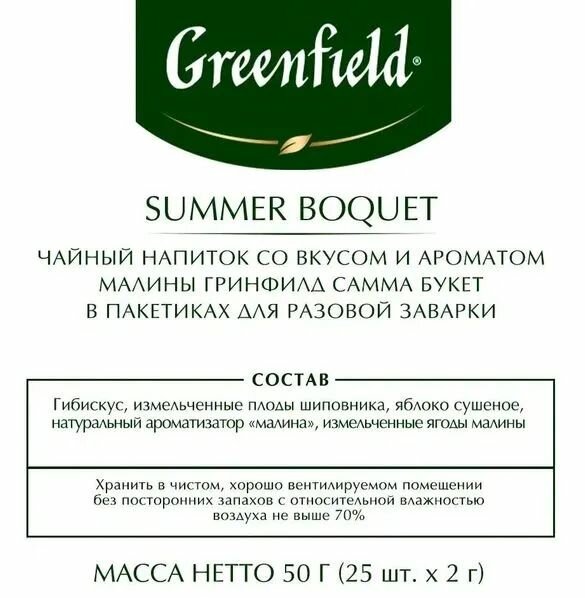 Чай в пакетиках травяной Greenfield Summer Bouquet (Саммер Букет), 25 шт. Малина. интересное: