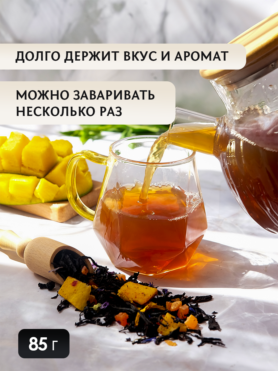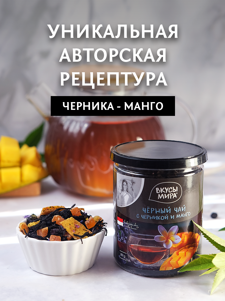 Чай черный Вкусы мира листовой цейлонский с манго и черникой 85 г среднелистовой интересное: