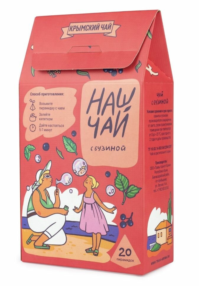 Купить Травы Горного Крыма Наш чай. Чай с бузиной, мятой перечной, листом ежевики, лавандой, 20 пирамидок
