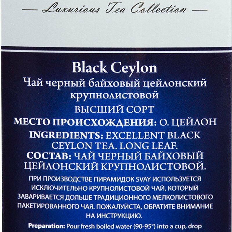 Чай черный Svay Black Ceylon крупнолистовой в пирамидках, 20 шт интересное: