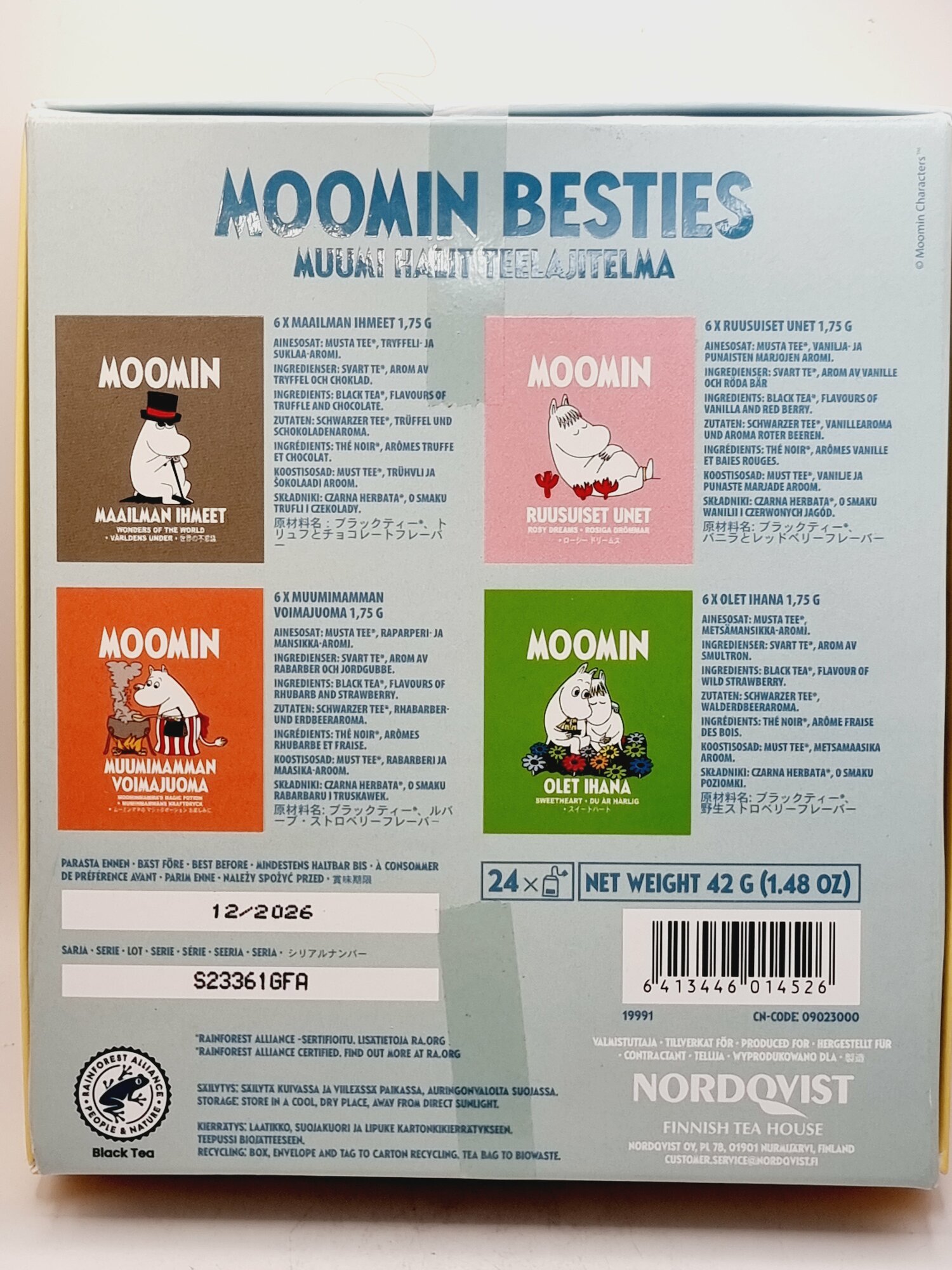 Купить Nordqvist Чай черный MOOMIN BESTIES "Лучшие мумины" ассорти 4 вида, 24 пакетика (из Финляндии)