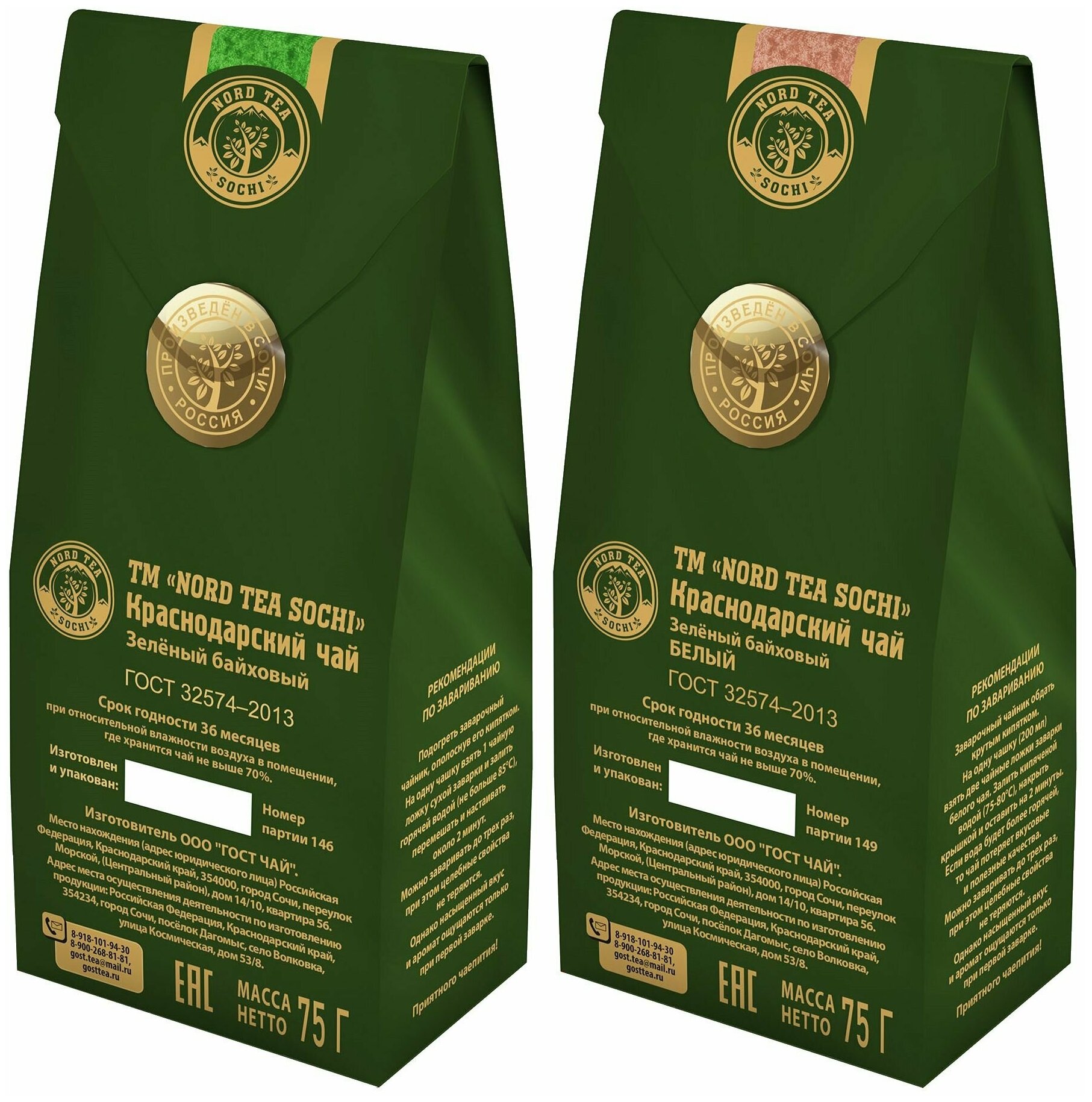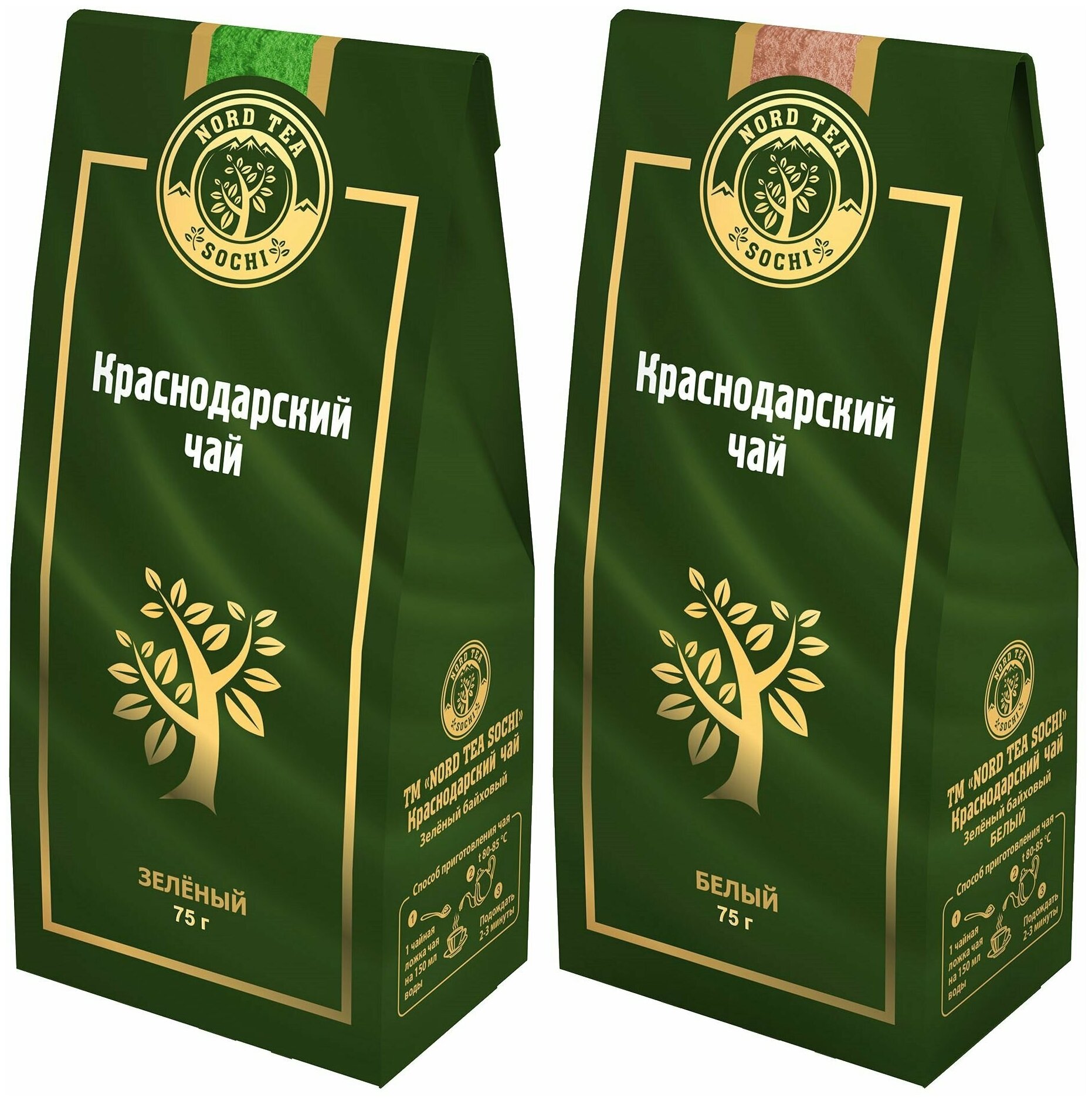 Краснодарский чай Ручной сбор 150г Зеленый 75г + Белый 75г набор интересное: