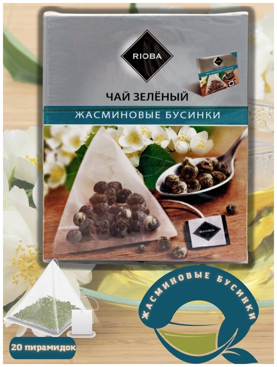 Чай зелёный RIOBA Жасминовые бусинки в пакетиках, 20 шт. по 2 г. интересное: