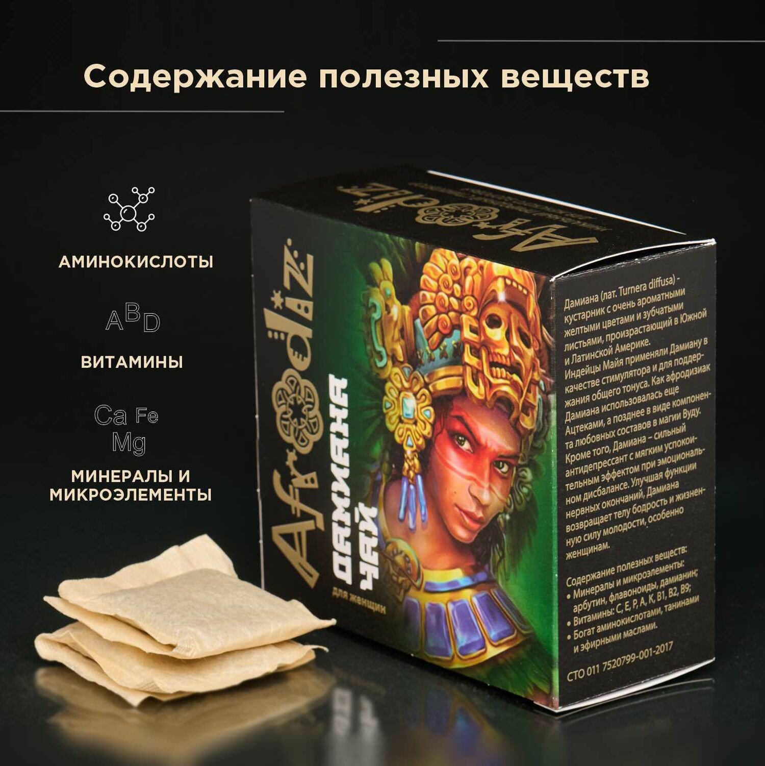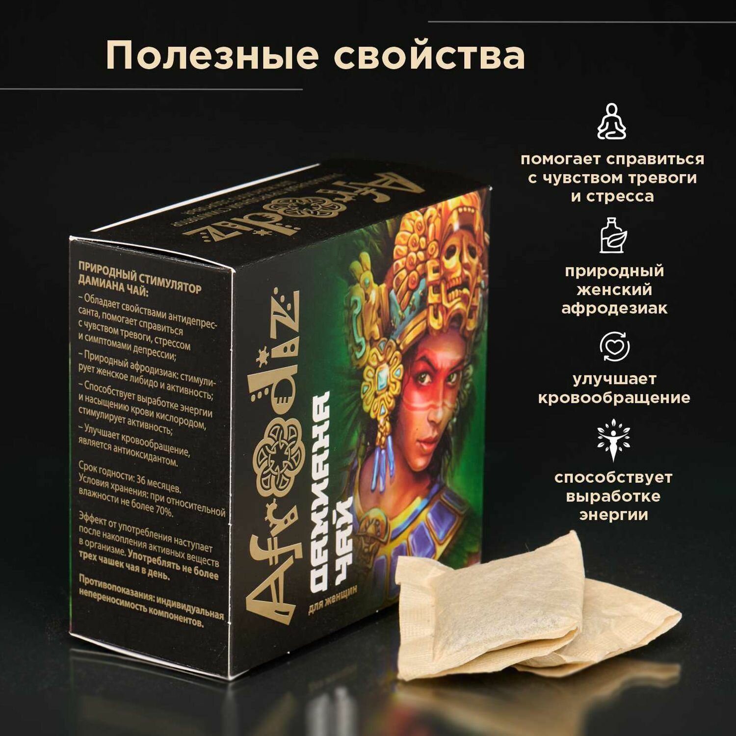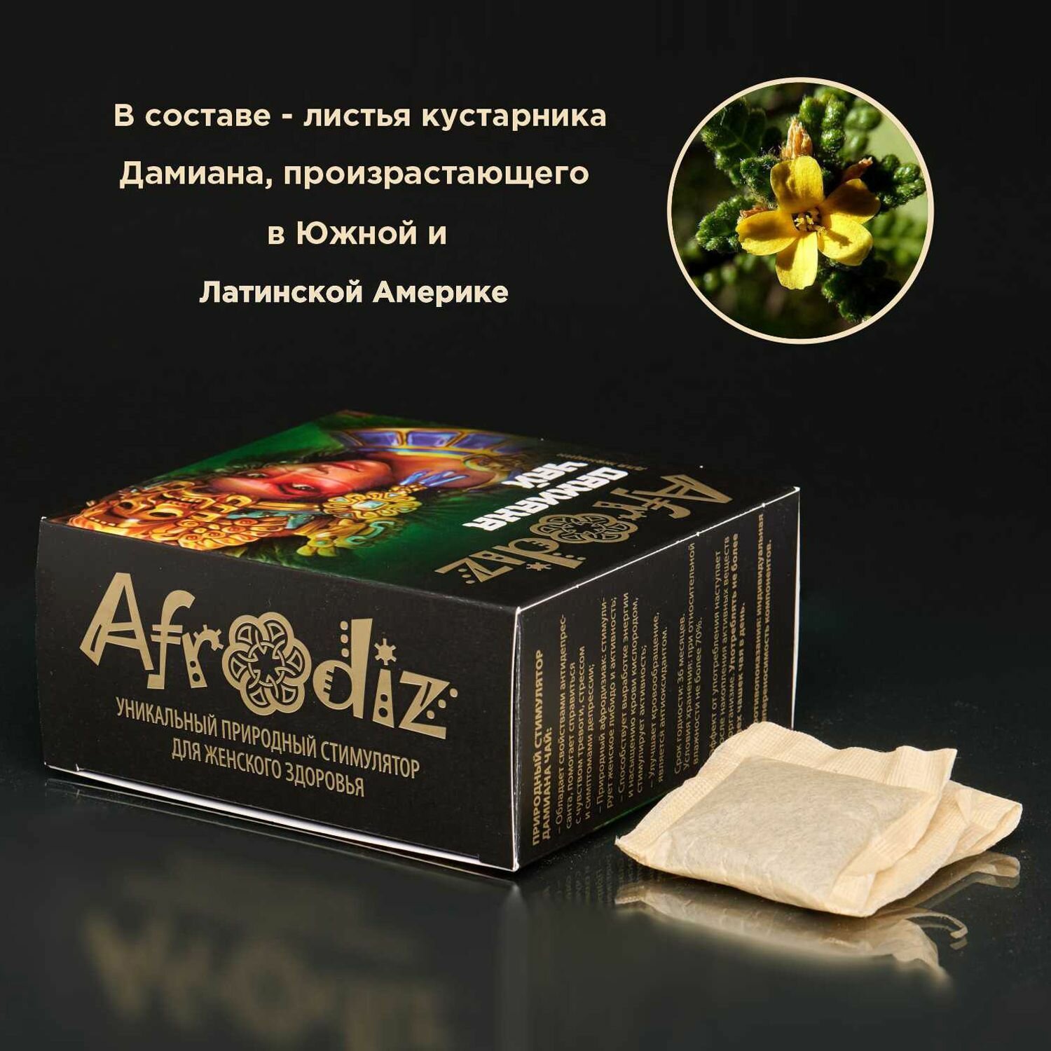 Afrodiz Чай зеленый Дамиана с афродизиаком для женщин в пакетиках интересное: