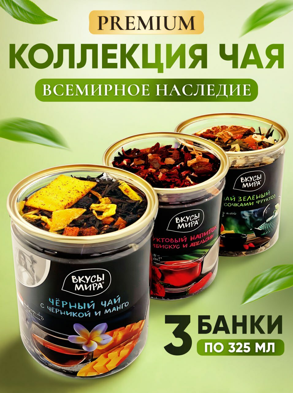 Чай листовой Вкусы мира набор из трех вкусов ассорти (черный зеленый красный) интересное: