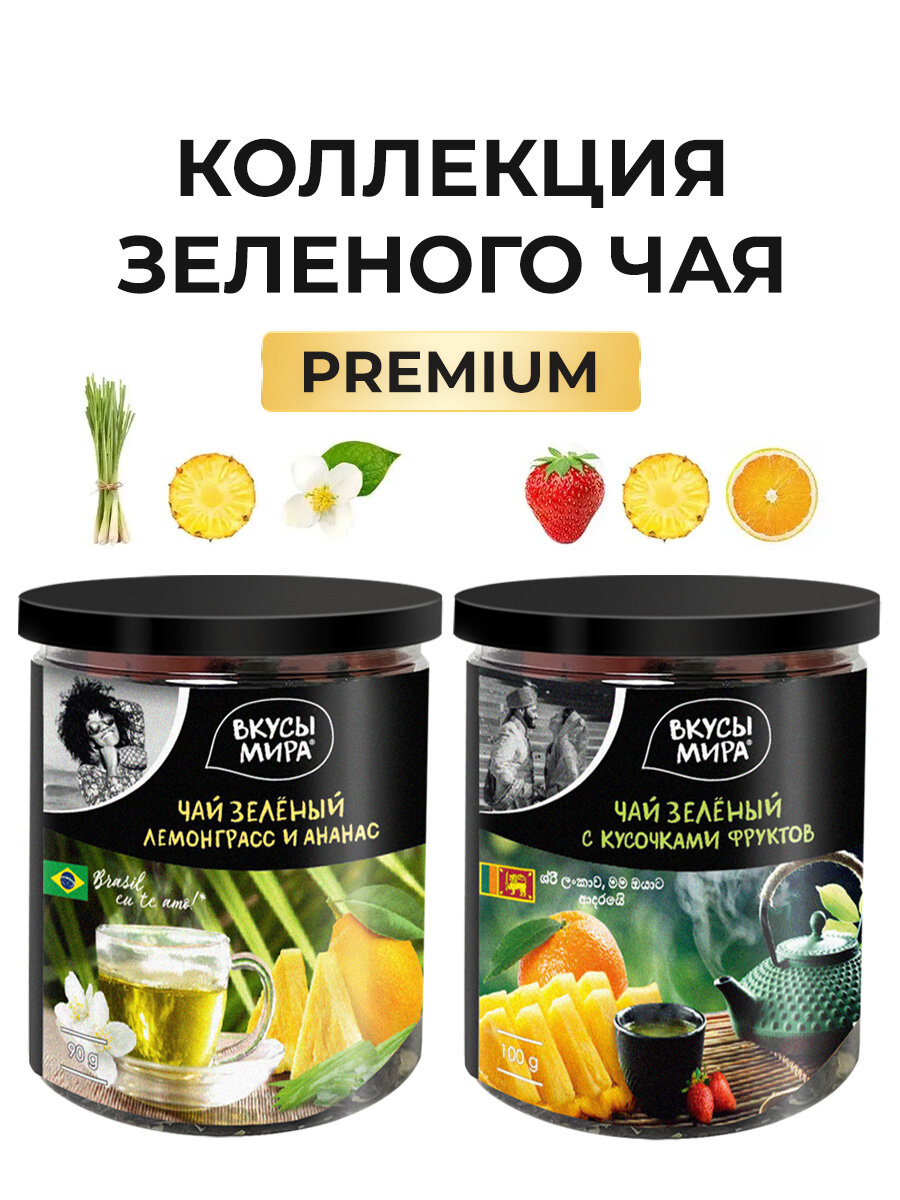Набор Чай листовой зеленый с фруктами Вкусы мира заварочный 2 баночки 90 и 100 г. интересное: