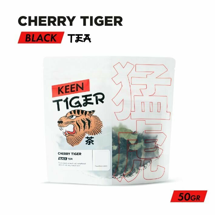 Купить Чай Keen Tiger Cherry Tiger, чёрный, листовой, с вишневым листом, 50 гр