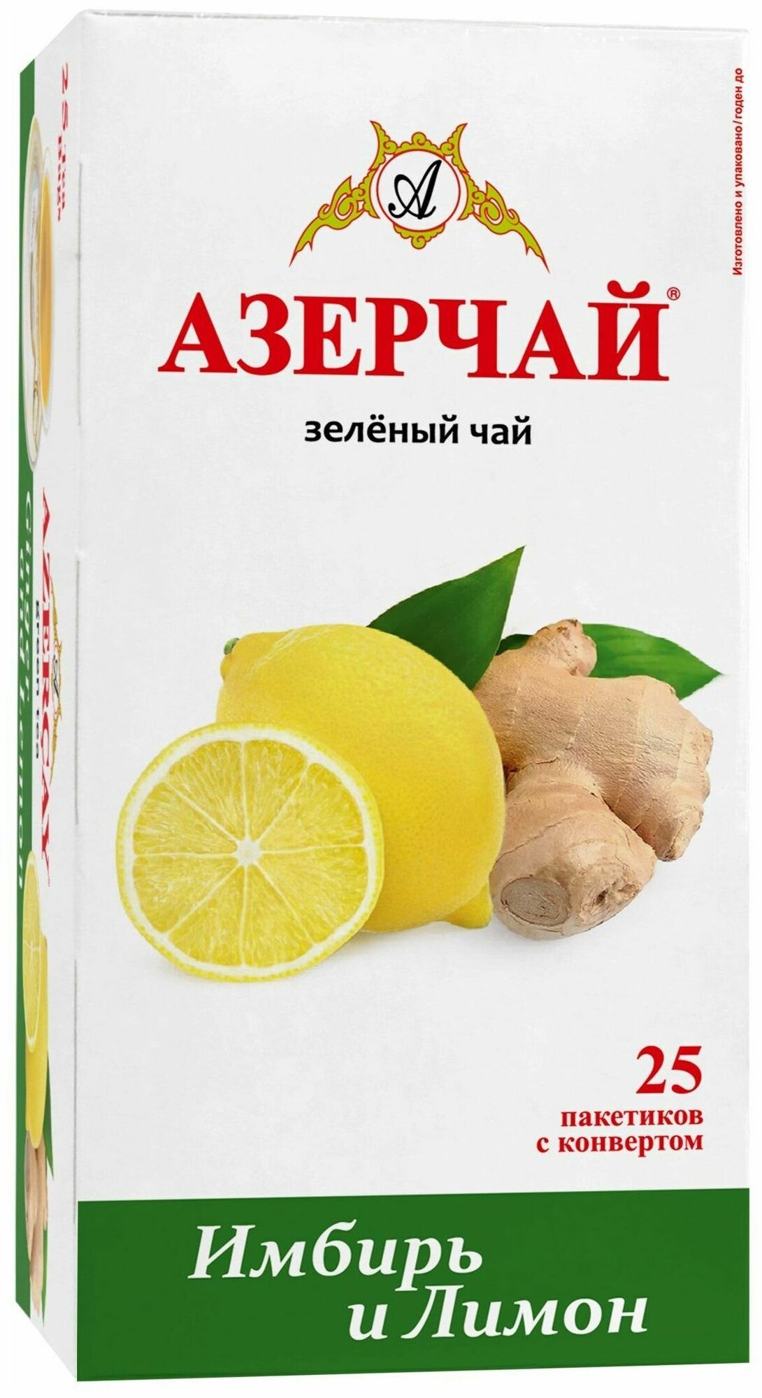 Купить Азерчай Чай в пакетиках с Имбирем и Лимоном, зеленый, 25 пакетиков по 1,8 г