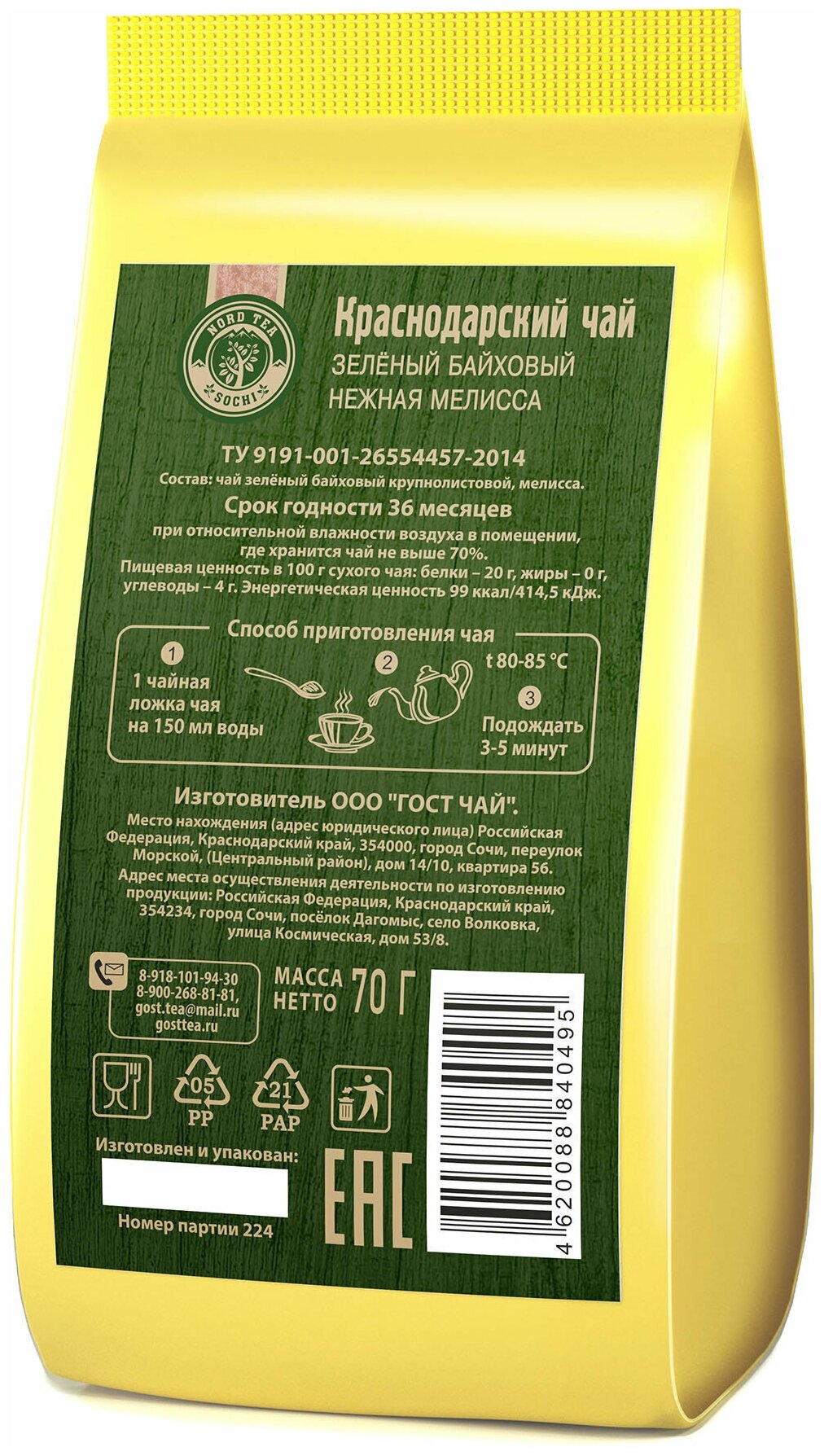 Краснодарский чай ручной сбор 70г зеленый Нежная Мелисса крупнолистовой интересное: