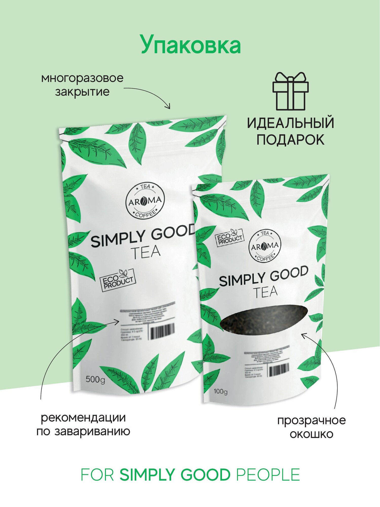 Китайский зеленый чай AROMA TEA COFFEE Сенча категория А 500 г