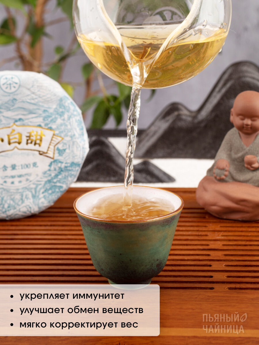 Чай китайский белый "Белая Сладость" блин 100 грамм, прессованный листовой шоу мэй для похудения интересное: