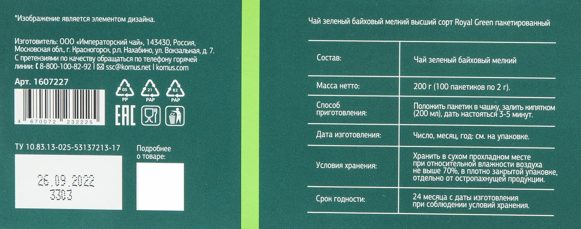Чай Деловой Стандарт Royal Green tea зеленый 100 пакетиков интересное: