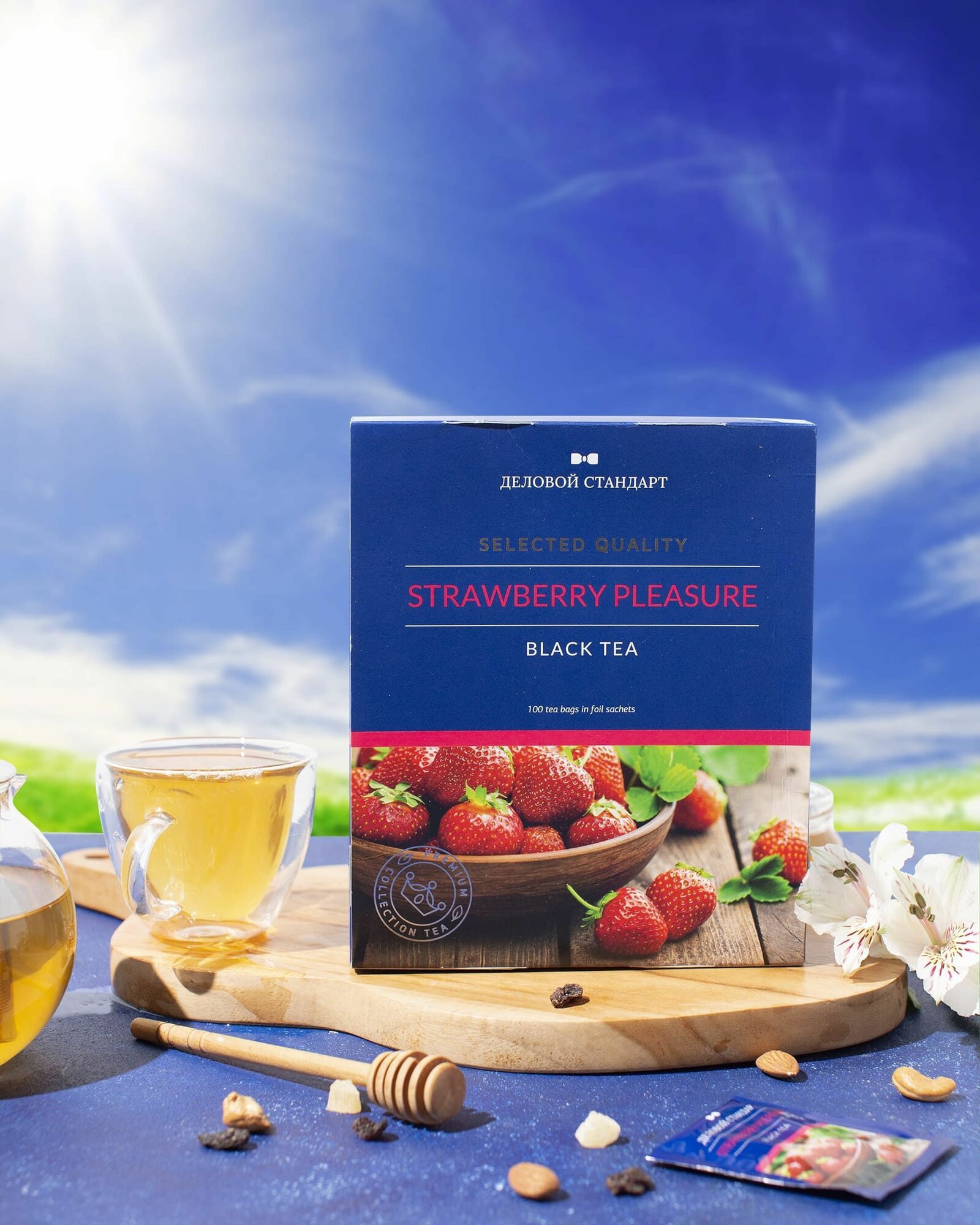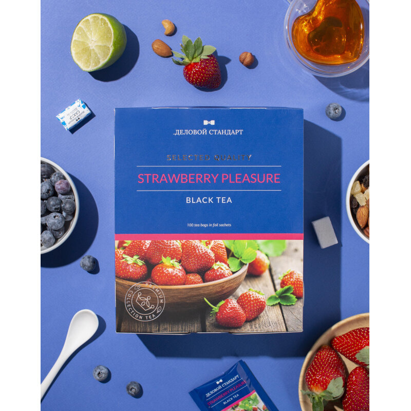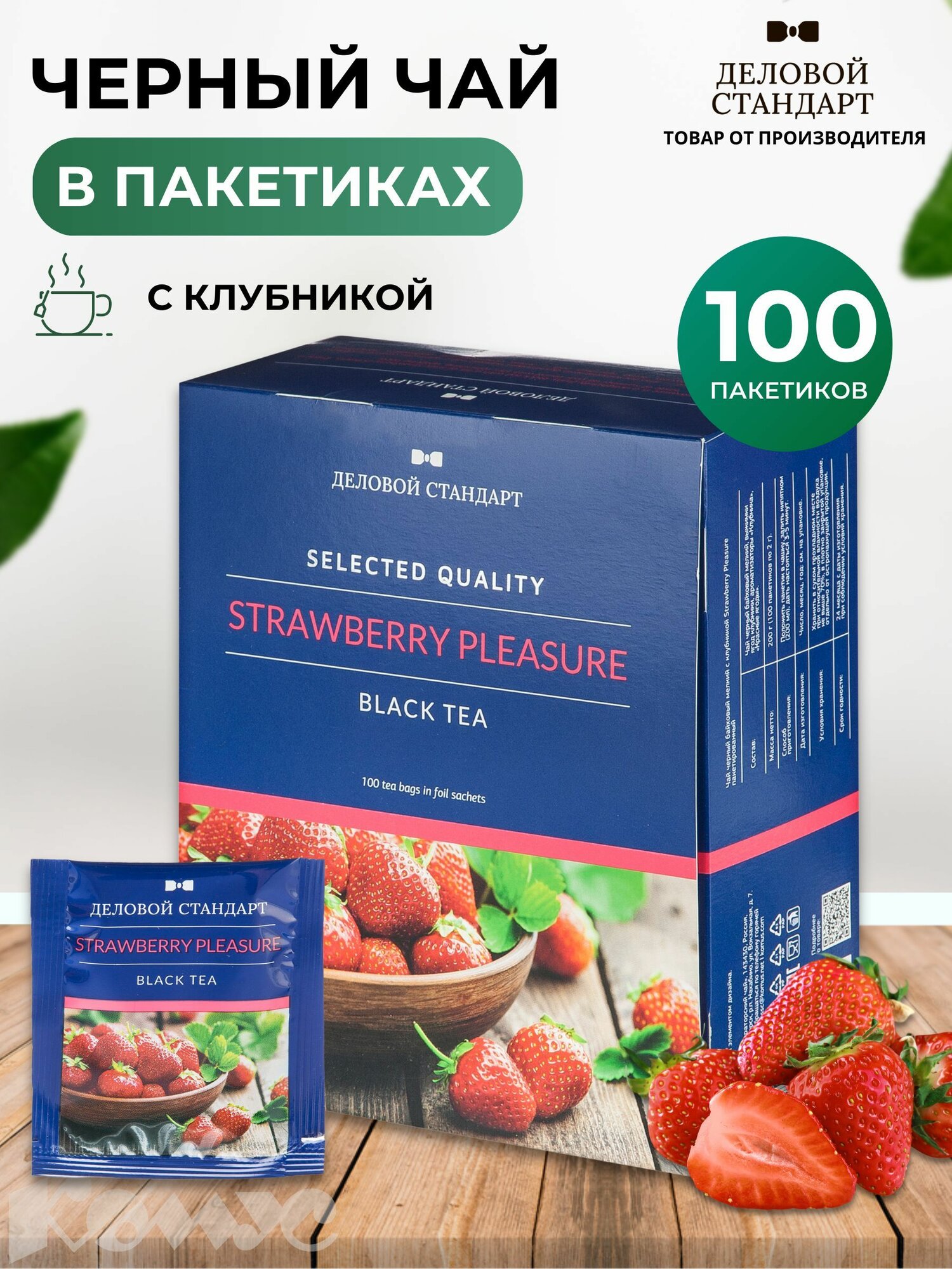 Купить Чай Деловой Стандарт Strawberry pleasure черный с клубникой 100 пакетиков
