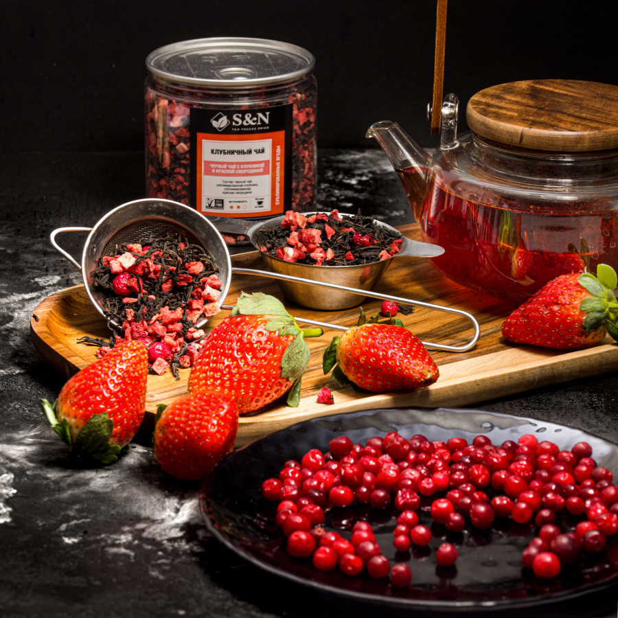 Чай черный с сублимированной клубникой и смородиной интересное: