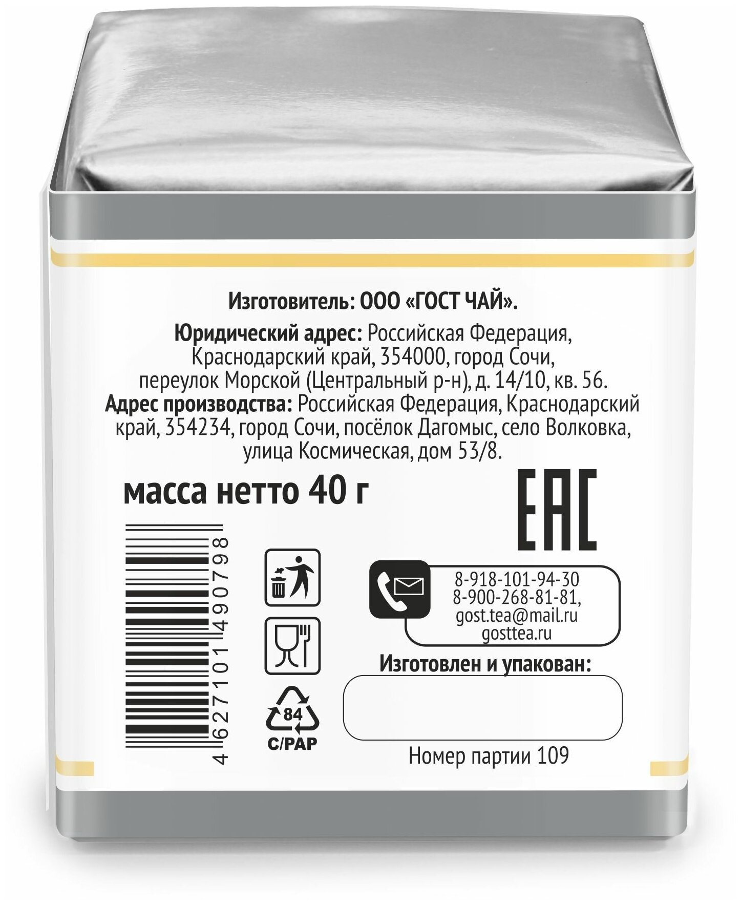 Краснодарский чай Ручной сбор 40г черный Бергамот интересное: