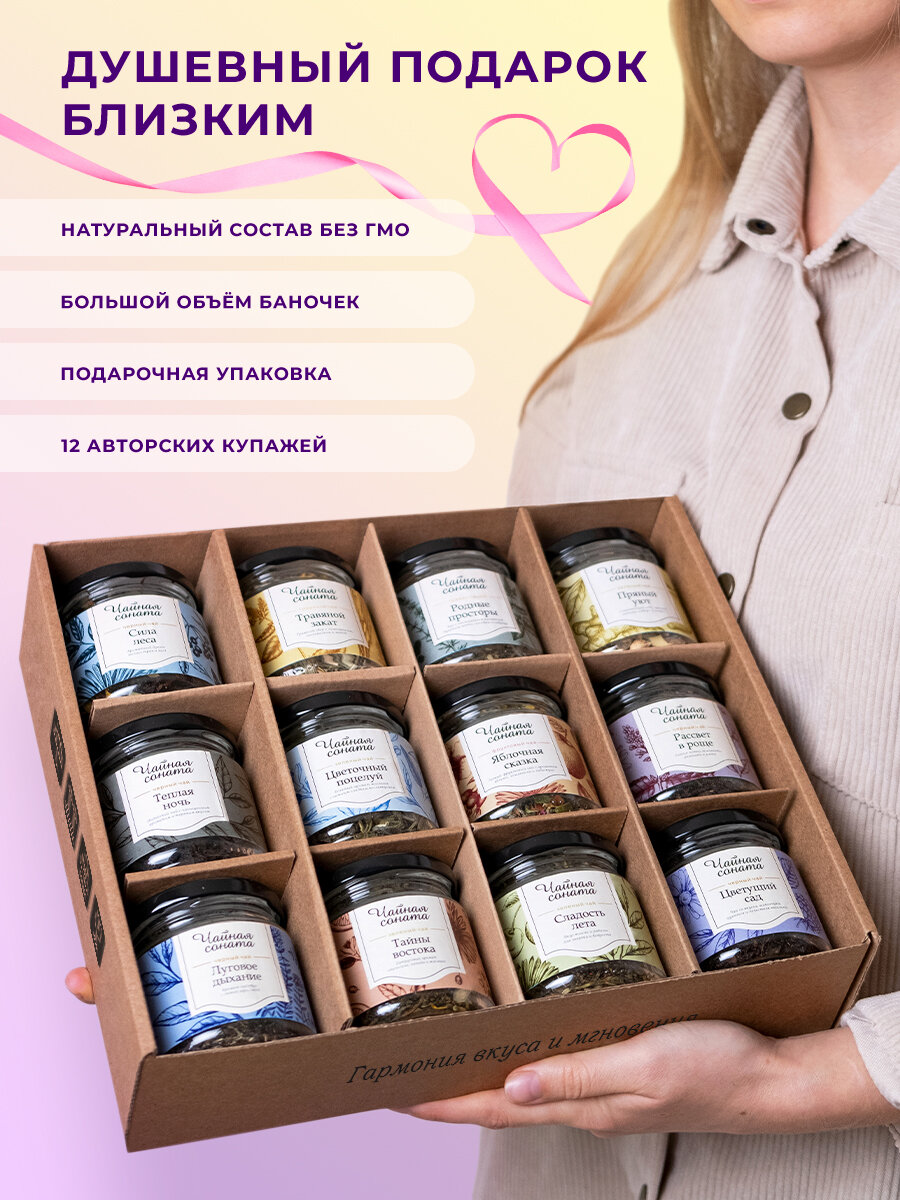 Купить Чай листовой Чайная соната ассорти из 12 вкусов: черный, зеленый, подарочный набор, подарок женщине на 8 марта