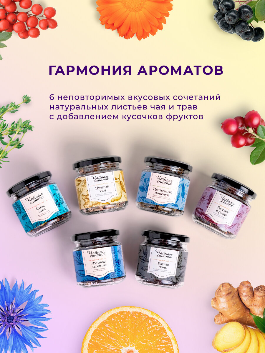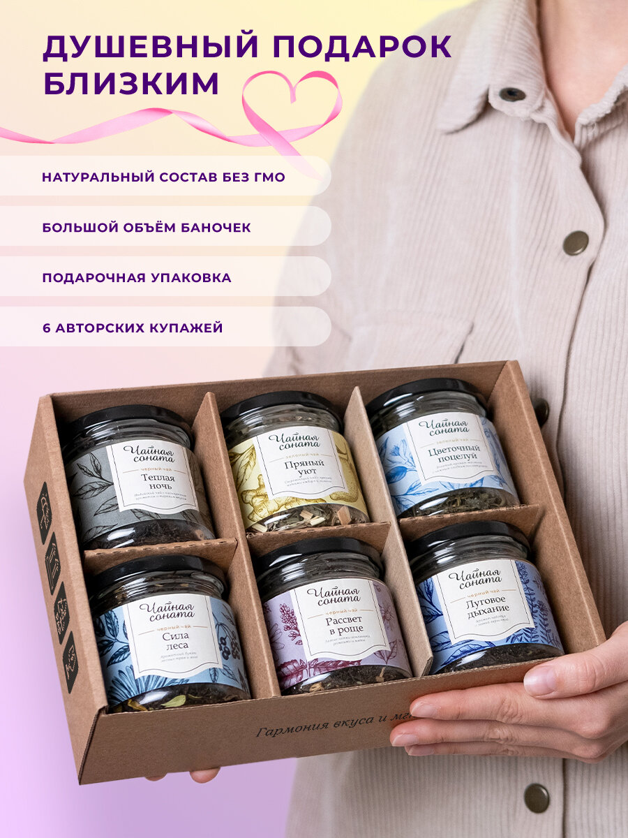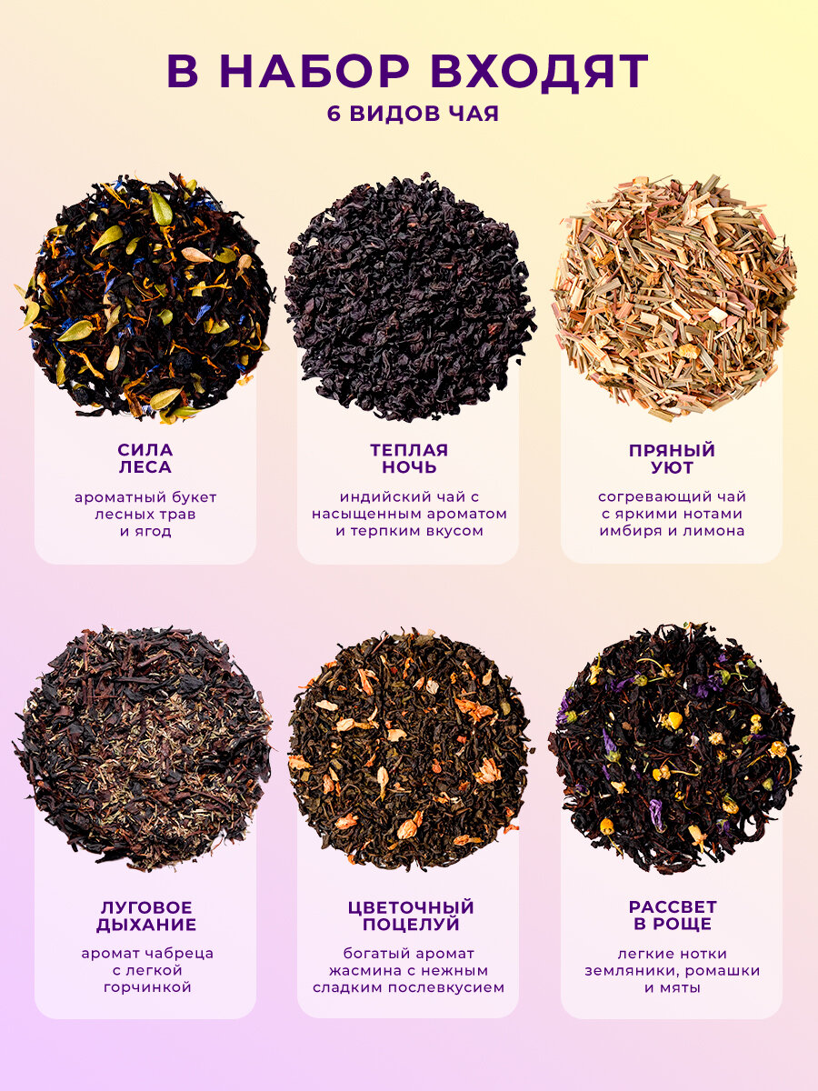 Набор чая Чайная соната ассорти листовой весовой чай, 6 вкусов по 200 мл интересное: