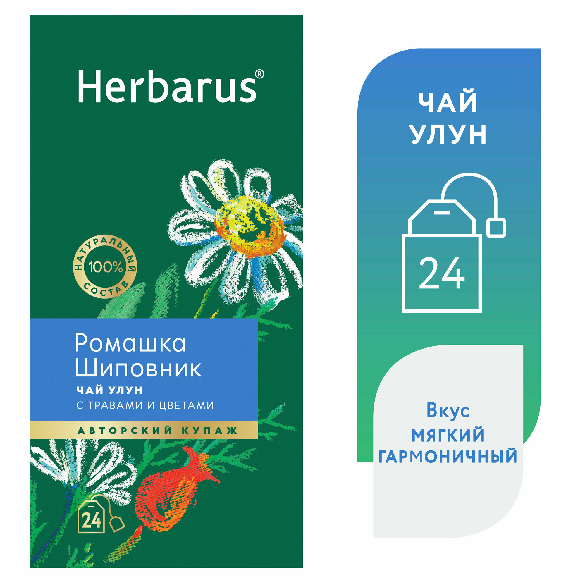 Чай улун с добавками в пакетиках Herbarus "Ромашка Шиповник", 24 шт. интересное: