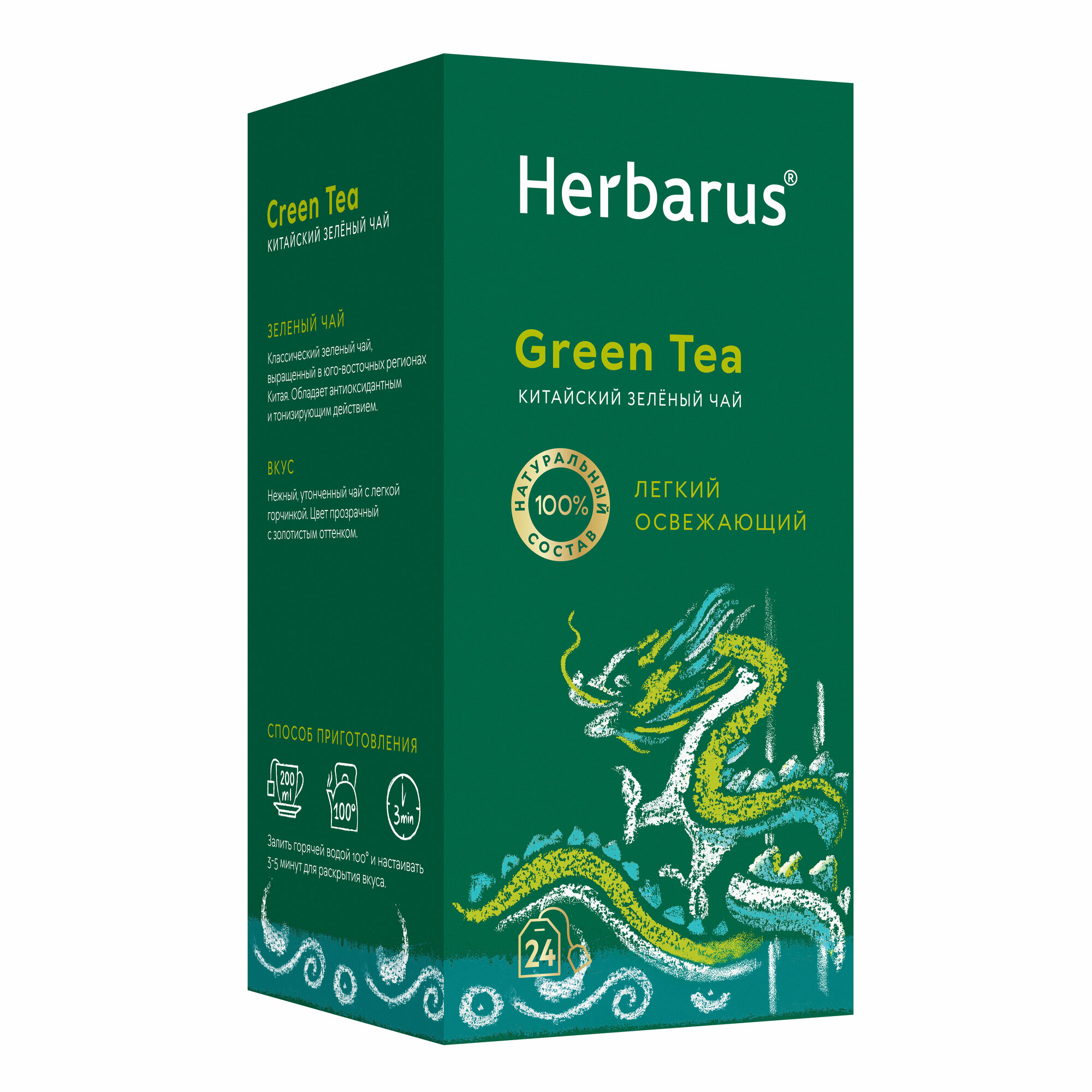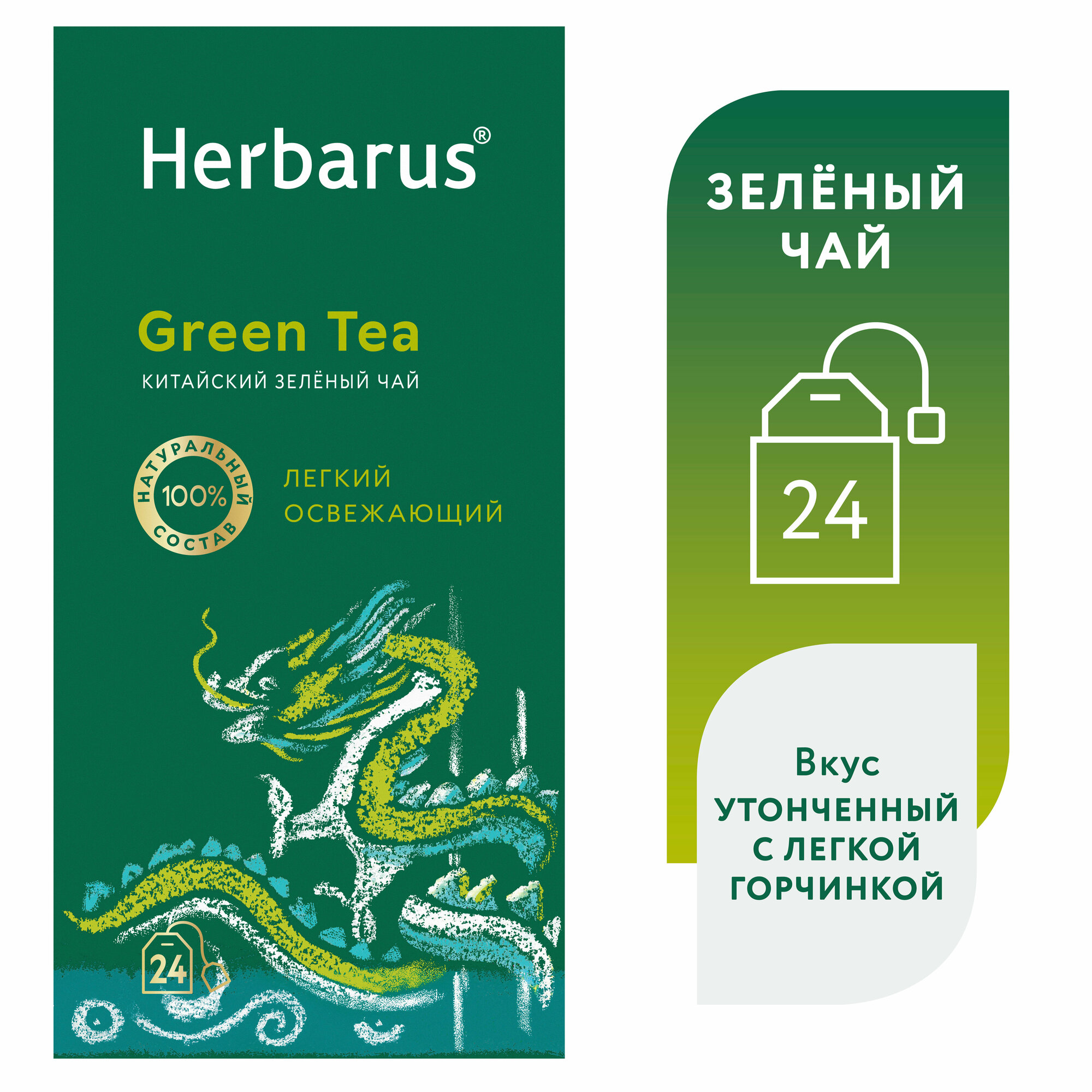 Купить Чай зеленый листовой мелкий в пакетиках Green Tea без добавок, 24 пакетика