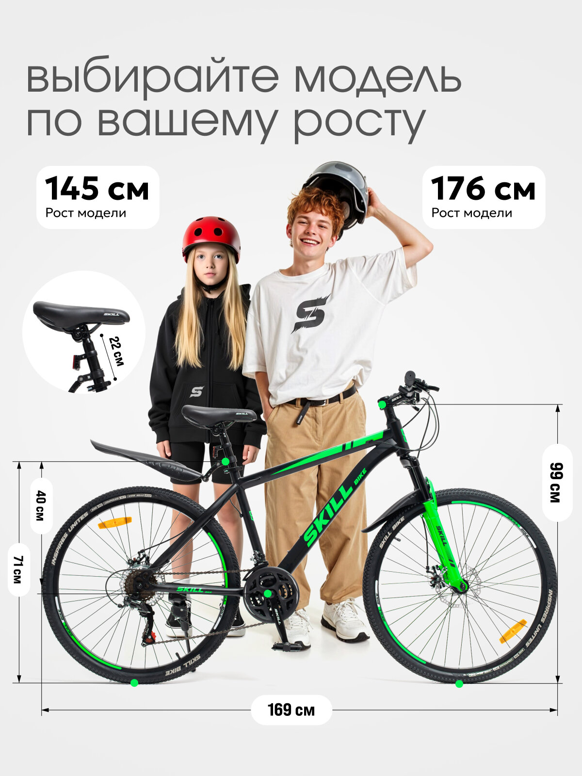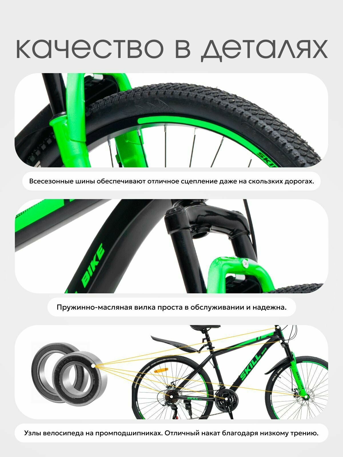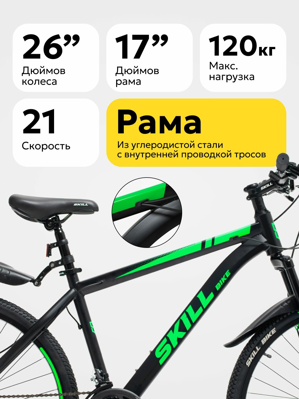 Велосипед Skill Bike NX-260, горный, 21 скорость, сталь, 26" колеса, черно-зеленый интересное: