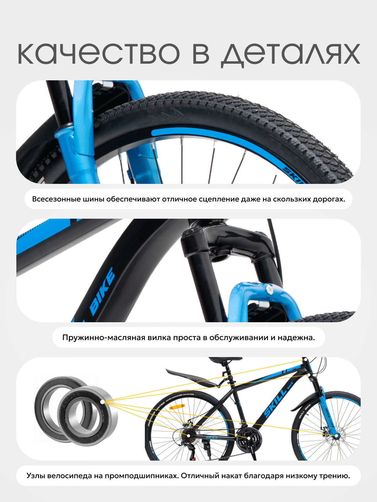 Велосипед Skill Bike NX-260, горный, 21 скорость, сталь, 26" колеса, черно-синий интересное: