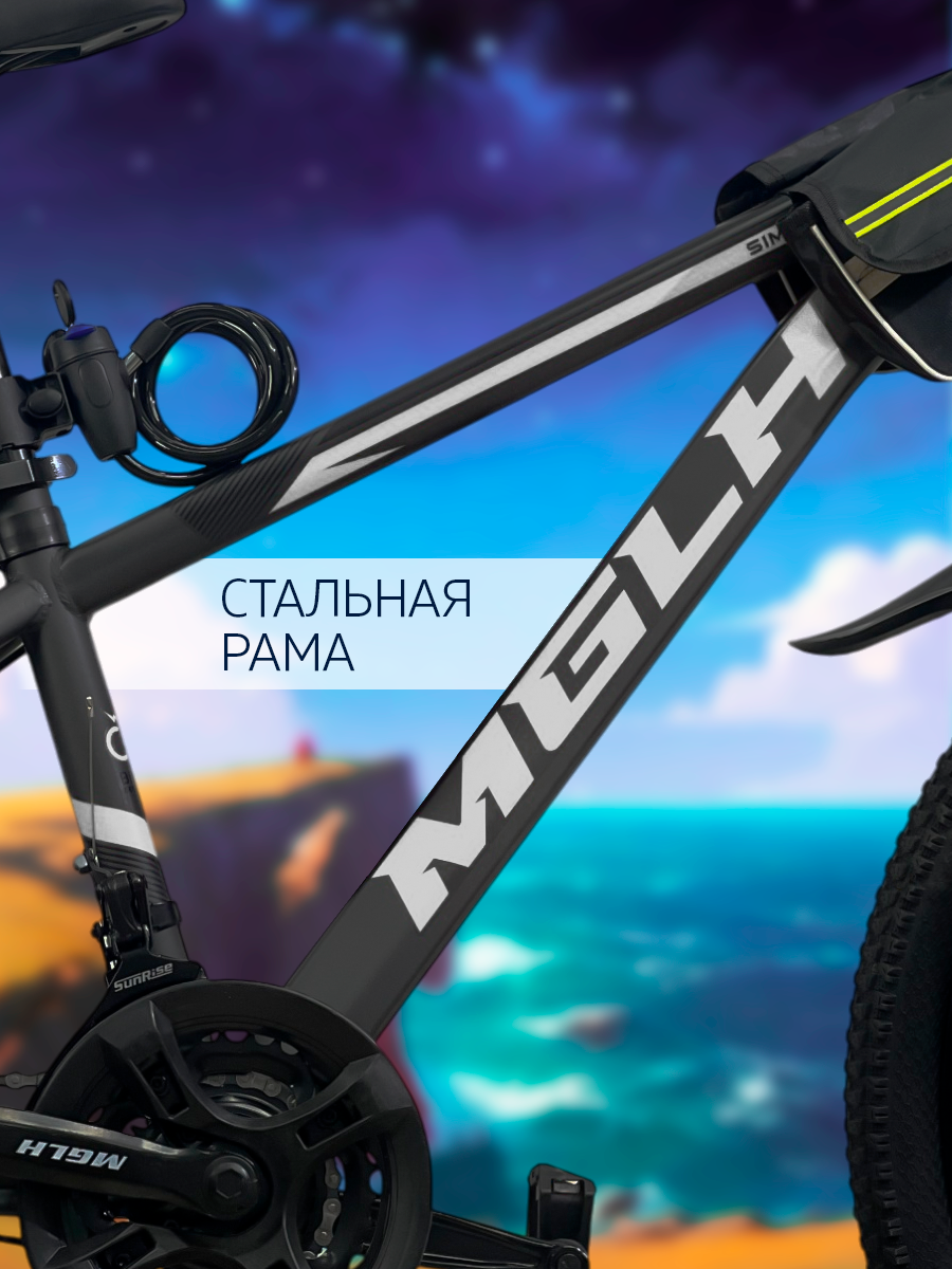 Горный велосипед скоростной, колёса 24", рама - 14", черно-белый интересное: