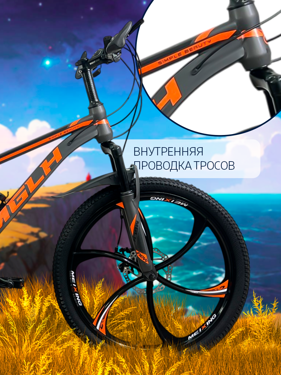 Горный велосипед скоростной, колёса 24", рама - 14", оранжево-серый интересное: