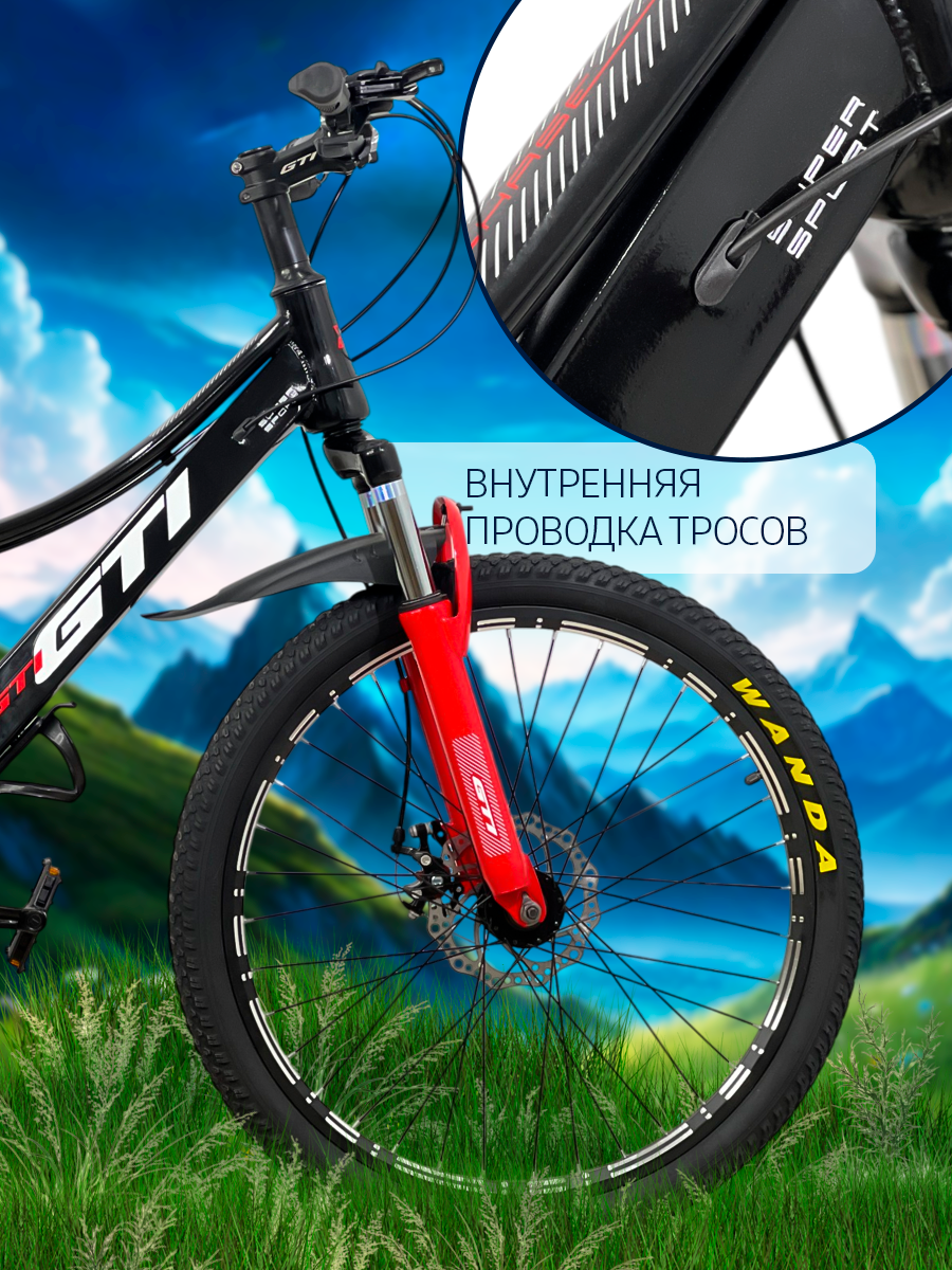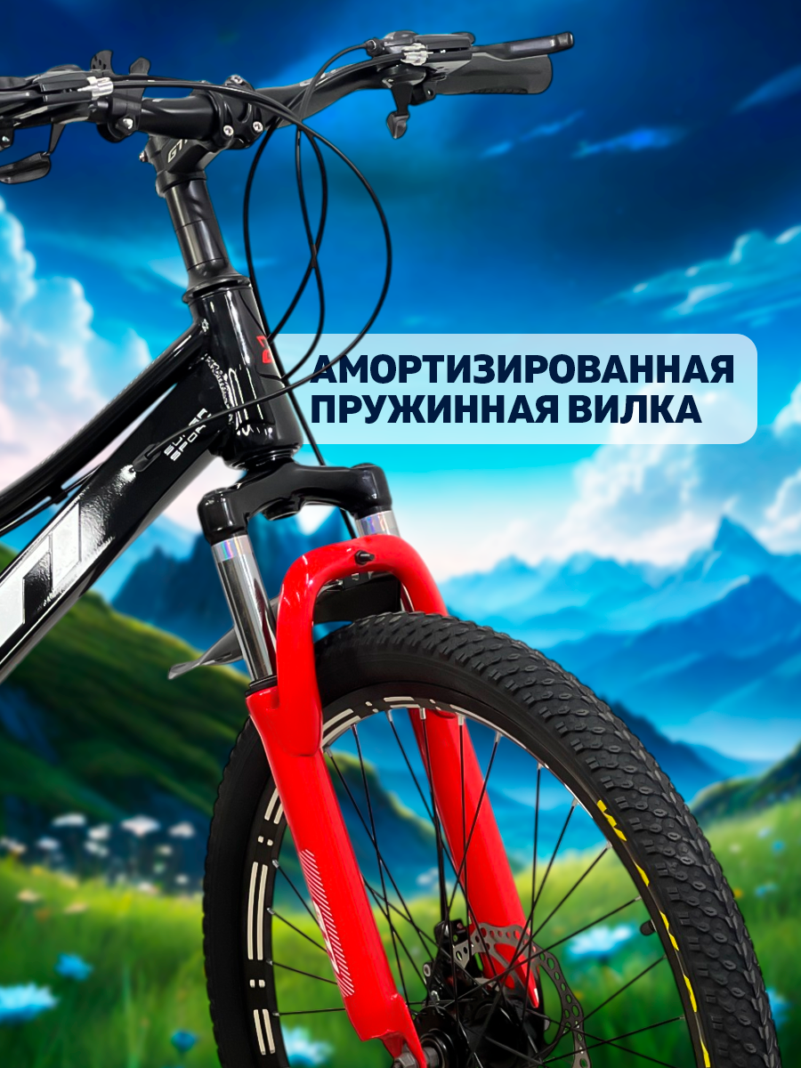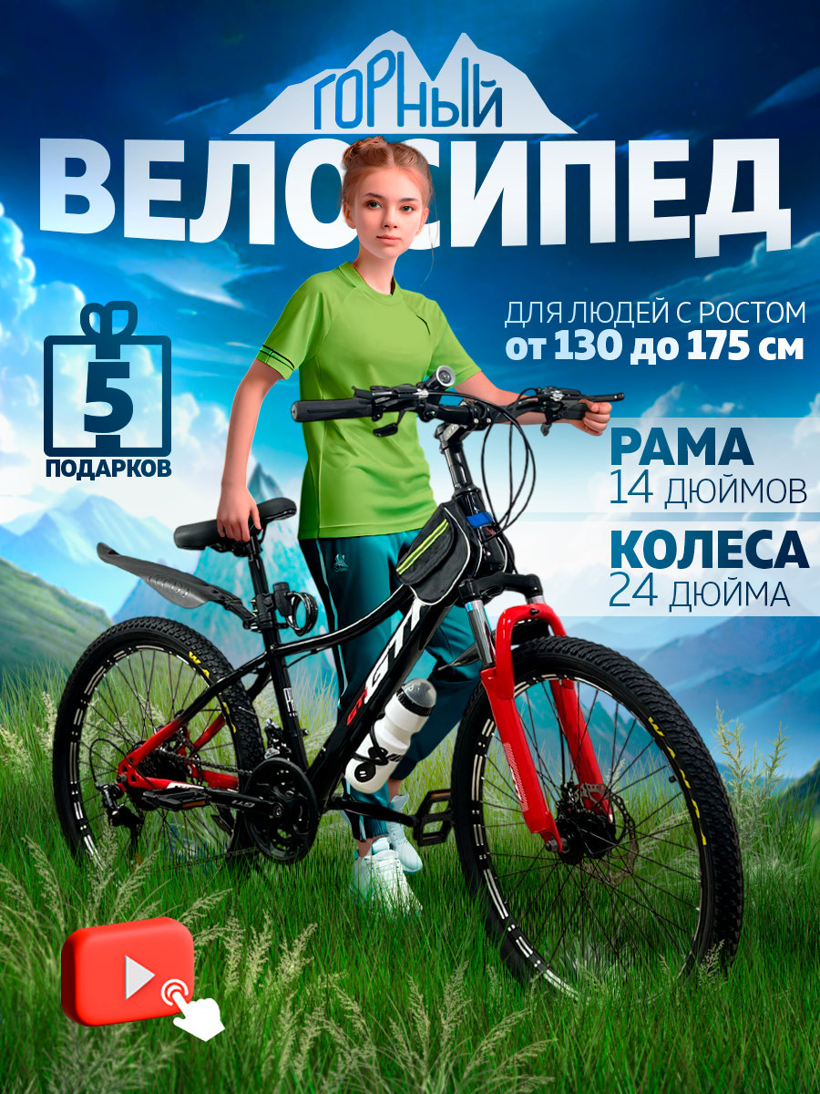 Горный велосипед QISHI 21s 24", универсальный, 21 скоростная система, рама 14", черно-красный интересное: