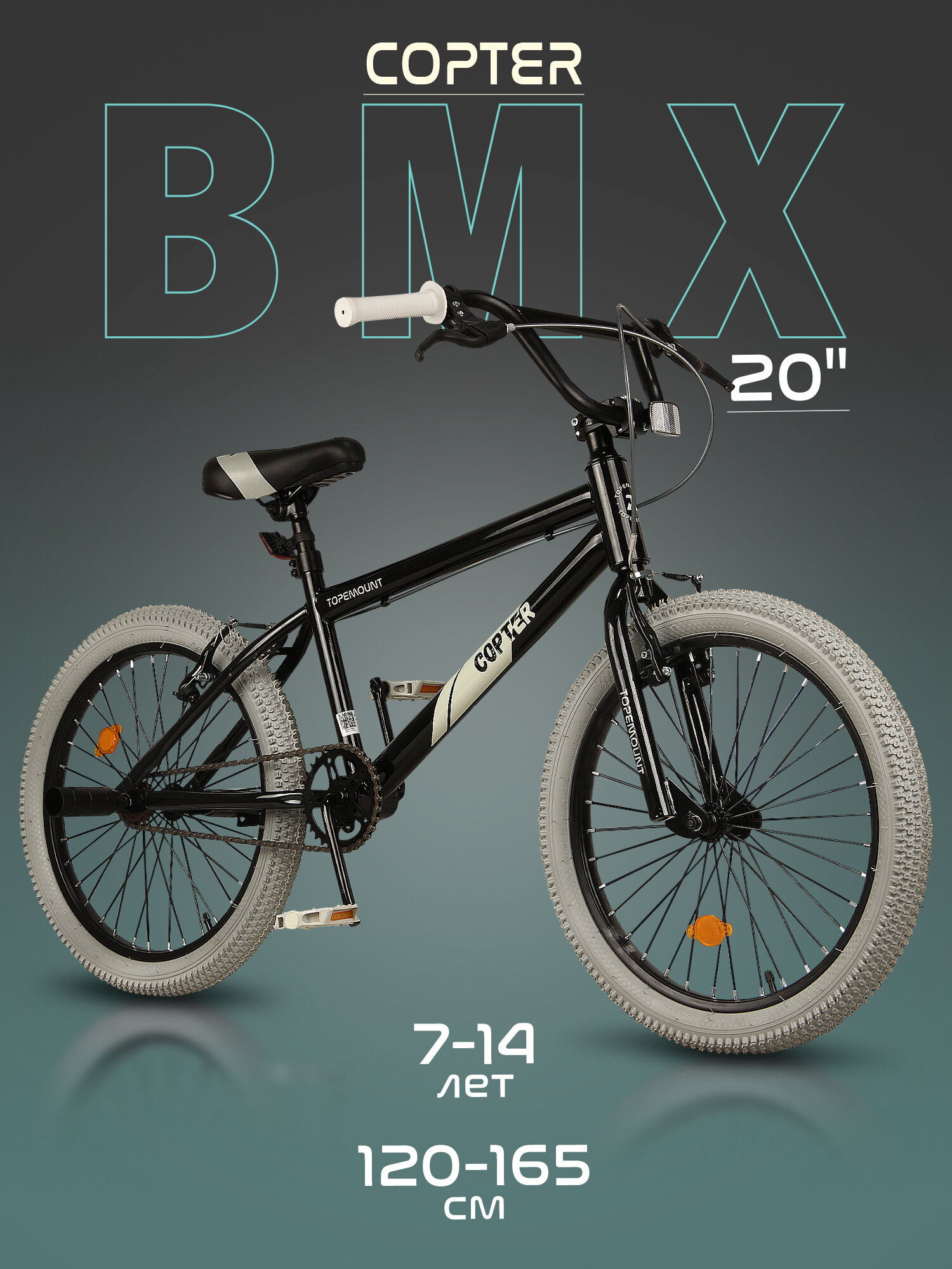 Купить Велосипед BMX TOPEMOUNT Copter 20" трюковой, на рост 120-165см, черный