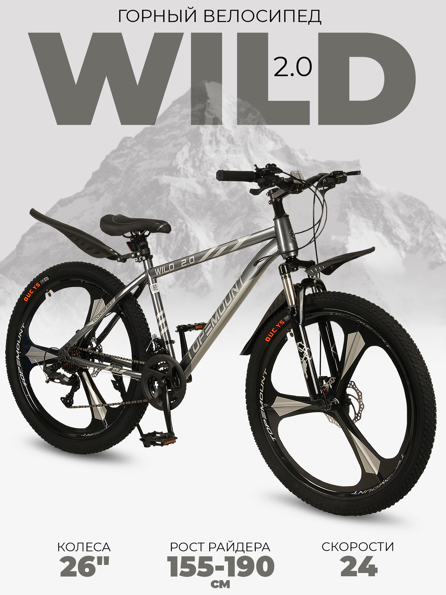 Купить Велосипед горный "Wild" 26, 16 рама, литые диски, сталь, дисковые тормоза, 24 скорости, черный