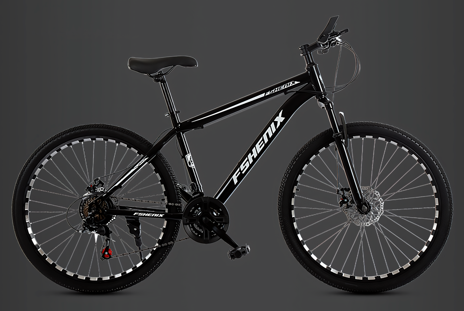 Подростковый велосипед FSHENIX 21 скорость, дисковый тормоз, черный и серый, со спицами 26", для 155-180 см