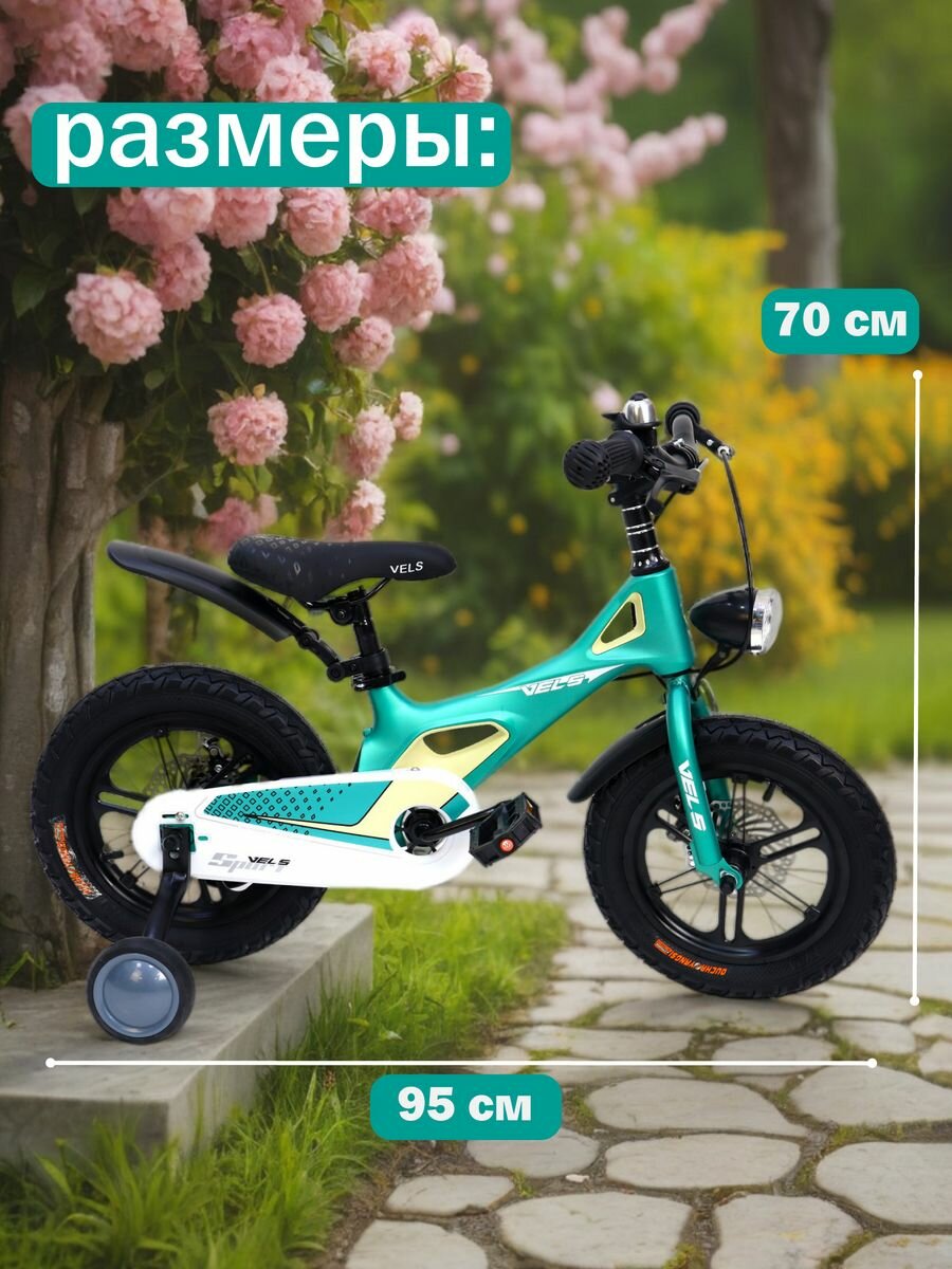 Купить Детский велосипед VELS, 14", зеленый, с боковыми колесами, для мальчиков и девочек, алюминиевый сплав, дисковый тормоз