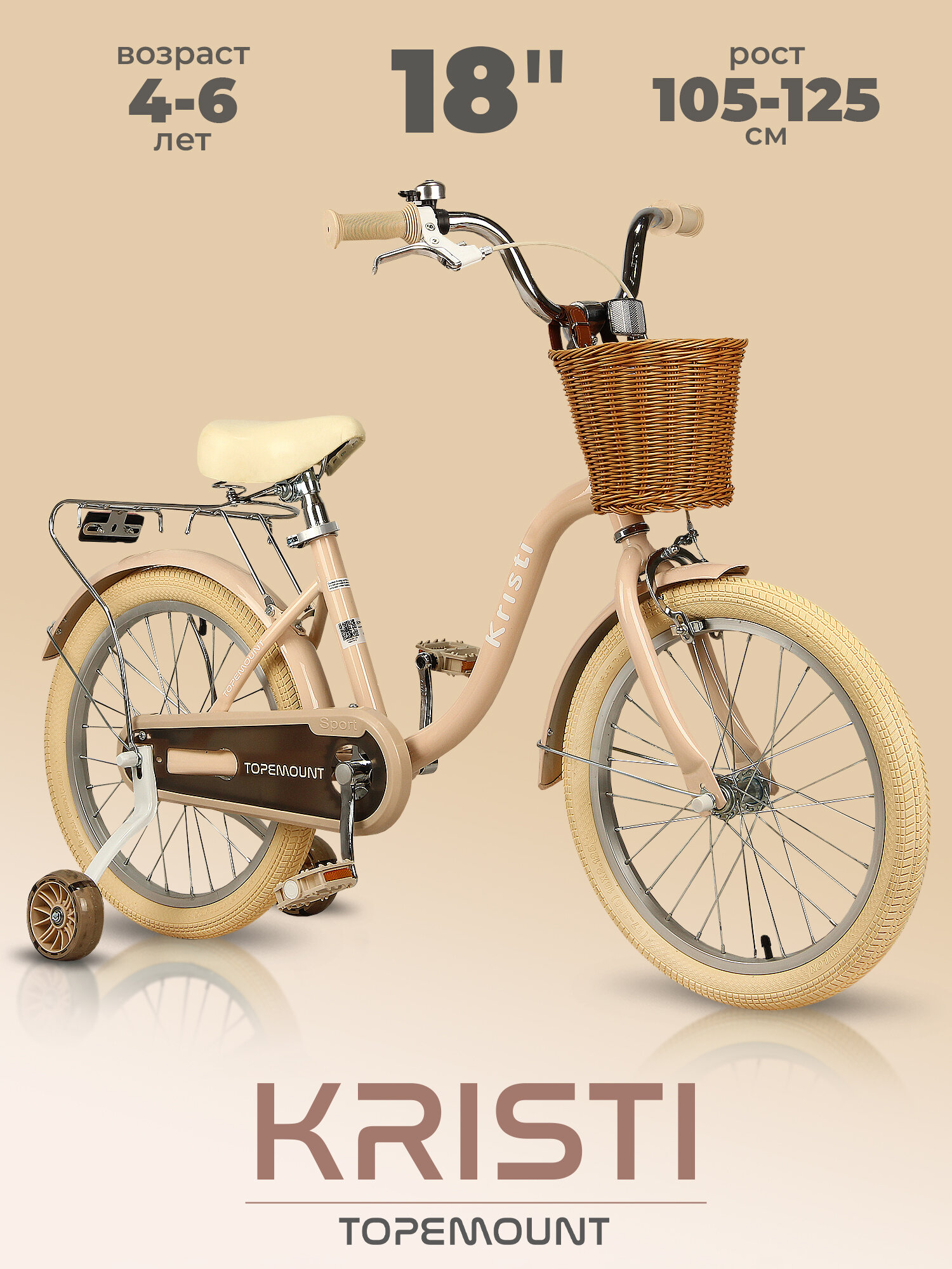Купить Велосипед детский TOPEMOUNT Kristi2.0 18", стальная рама, ручной тормоз, корзинка, бежевый