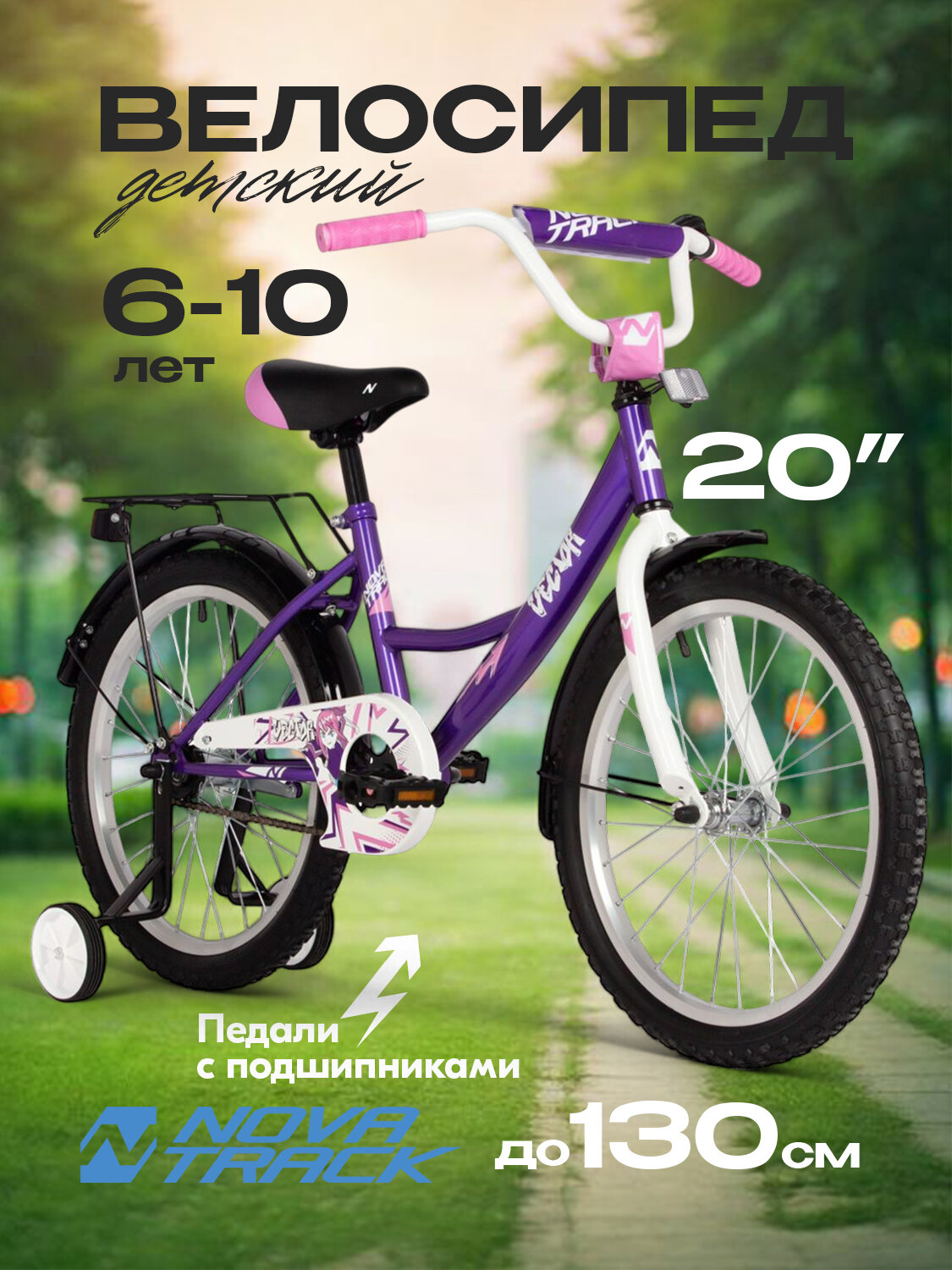 Велосипед NOVATRACK 20", Vector, фиолетовый, тормоз нож, крылья цвет, багажник хром. интересное: