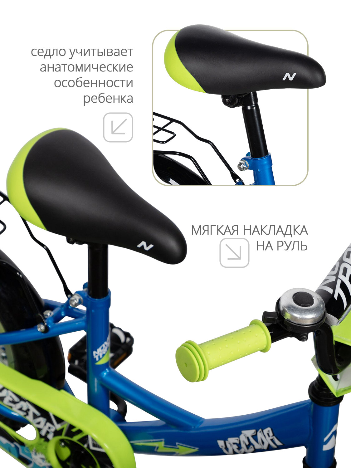 Велосипед NOVATRACK 14" VECTOR синий, тормоз нож, крылья, багажник, полная защ. цепи интересное: