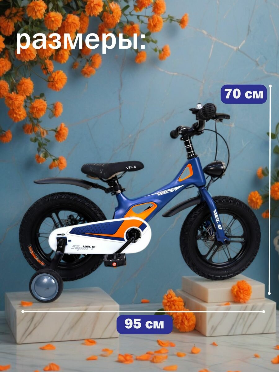 Детский велосипед VELS, 14", синий, с боковыми колесами, для мальчиков, алюминиевый сплав, дисковый тормоз интересное: