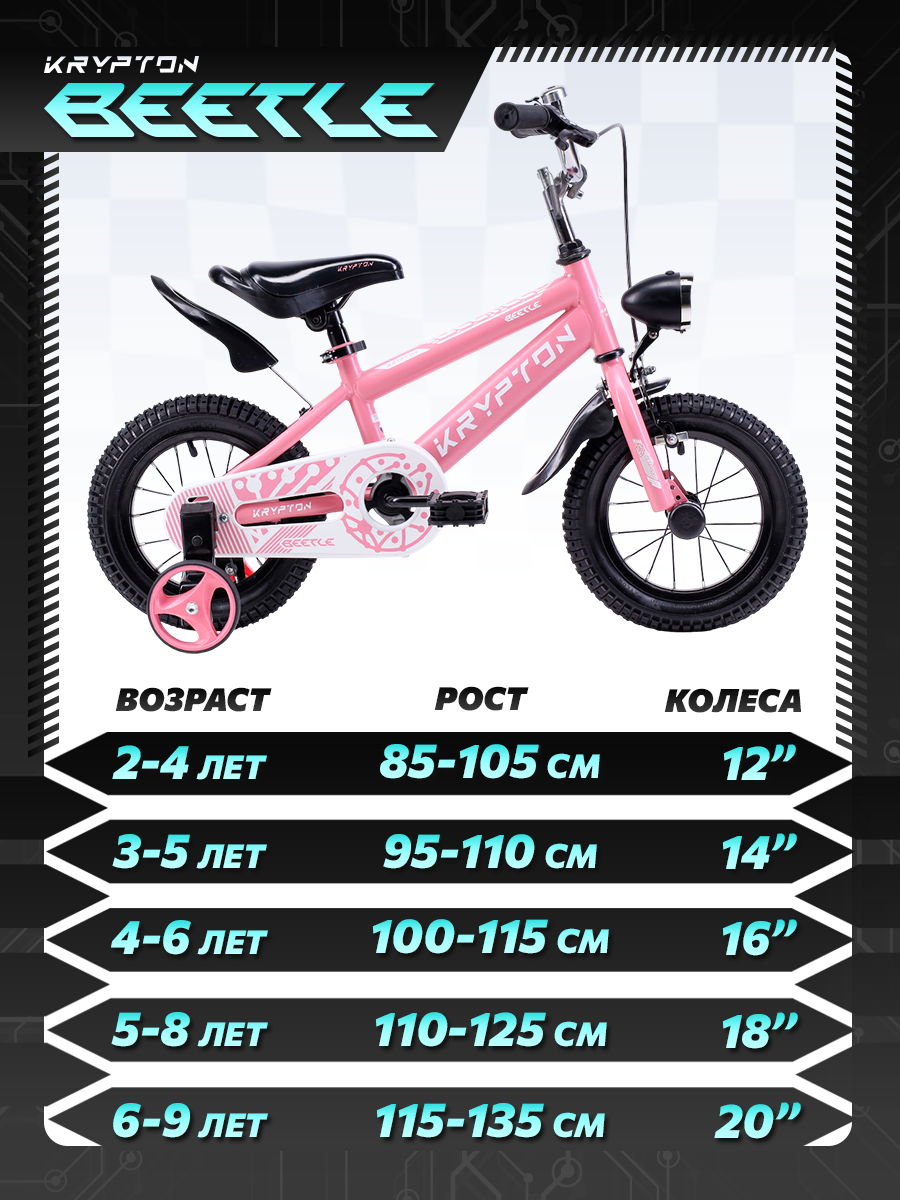 Велосипед детский двухколесный 12" Krypton Beetle цвет Dusty Rose / на 2-4 года, рост 85-105 см интересное: