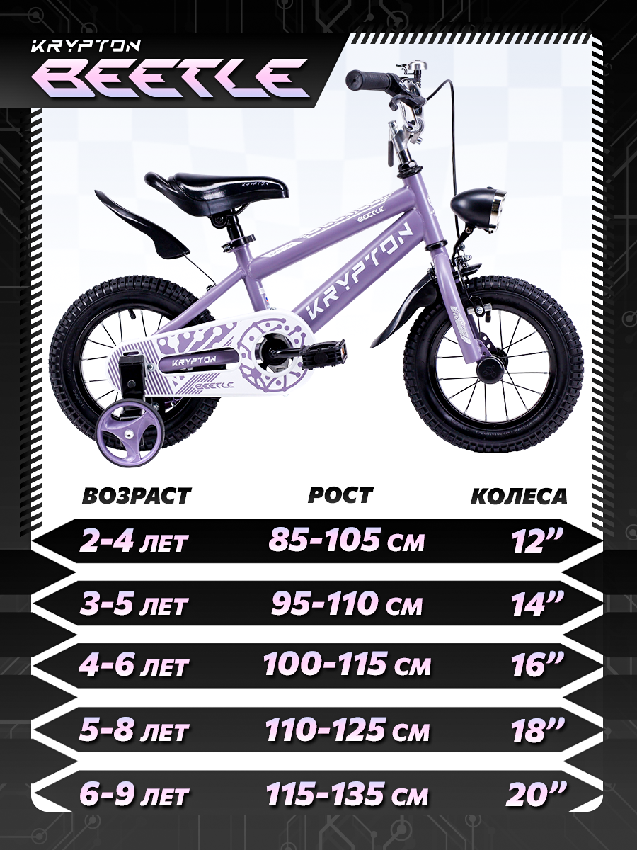 Велосипед детский двухколесный 12" Krypton Beetle цвет Dark Violet / на 2-4 года, рост 85-105 см интересное: