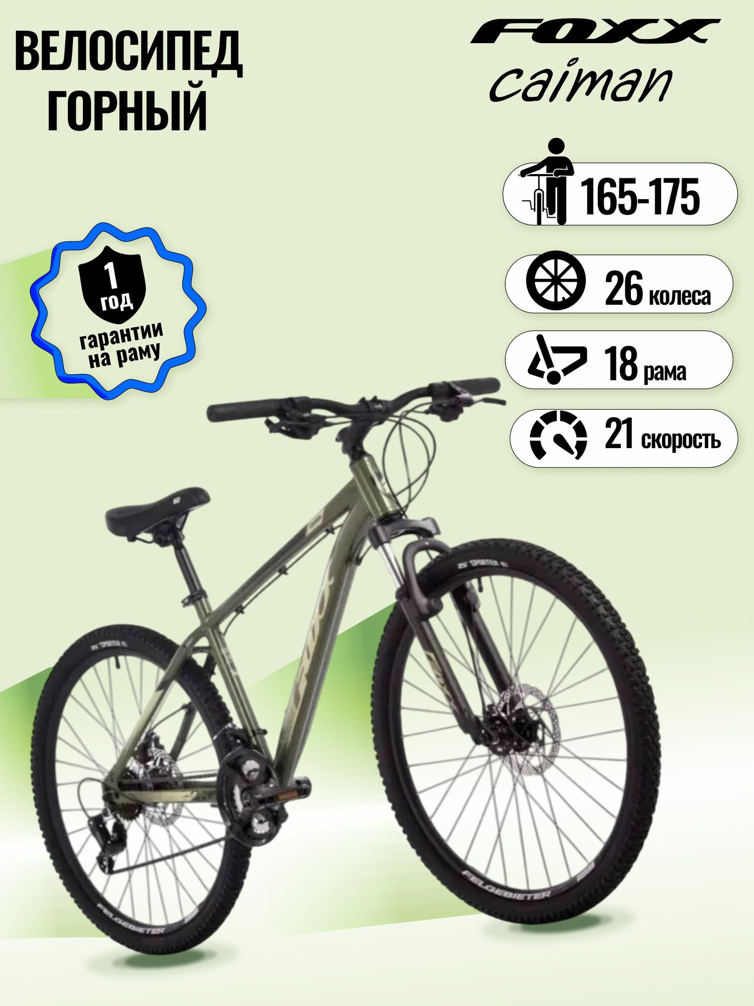Ниже Вы можете прочитать отзывы на Велосипед горный взрослый скоростной FOXX CAIMAN, рама 18, колесо 26, 21 скорость, на рост 165-175, хаки, мужской женский велик, ознакомится с подробными характеристиками, посмотреть интересные обзоры и фотографии на Велосипед горный взрослый скоростной FOXX CAIMAN, рама 18, колесо 26, 21 скорость, на рост 165-175, хаки, мужской женский велик.