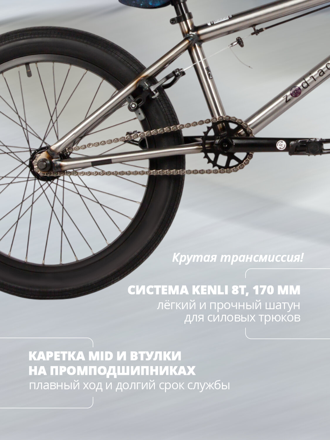 Велосипед NOVATRACK 20" BMX ZODIAC серебристый, сталь , рама 20", U-BRAKE интересное: