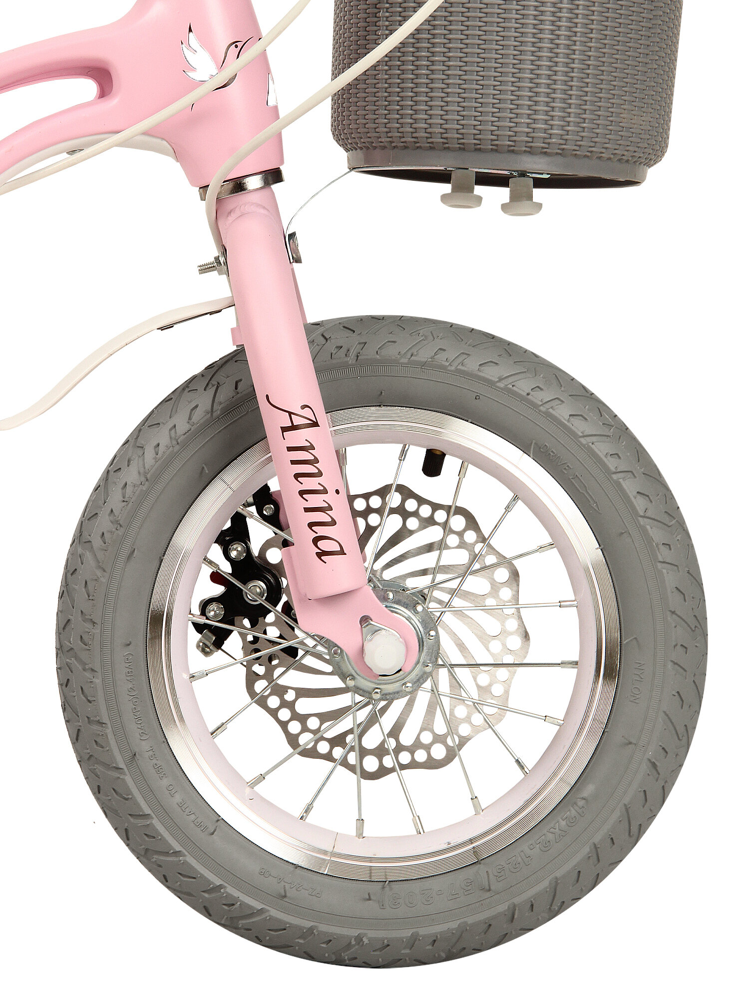 Велосипед детский TOPEMOUNT "Amina" 12, магниевая рама, дисковые тормоза, корзинка, розовый