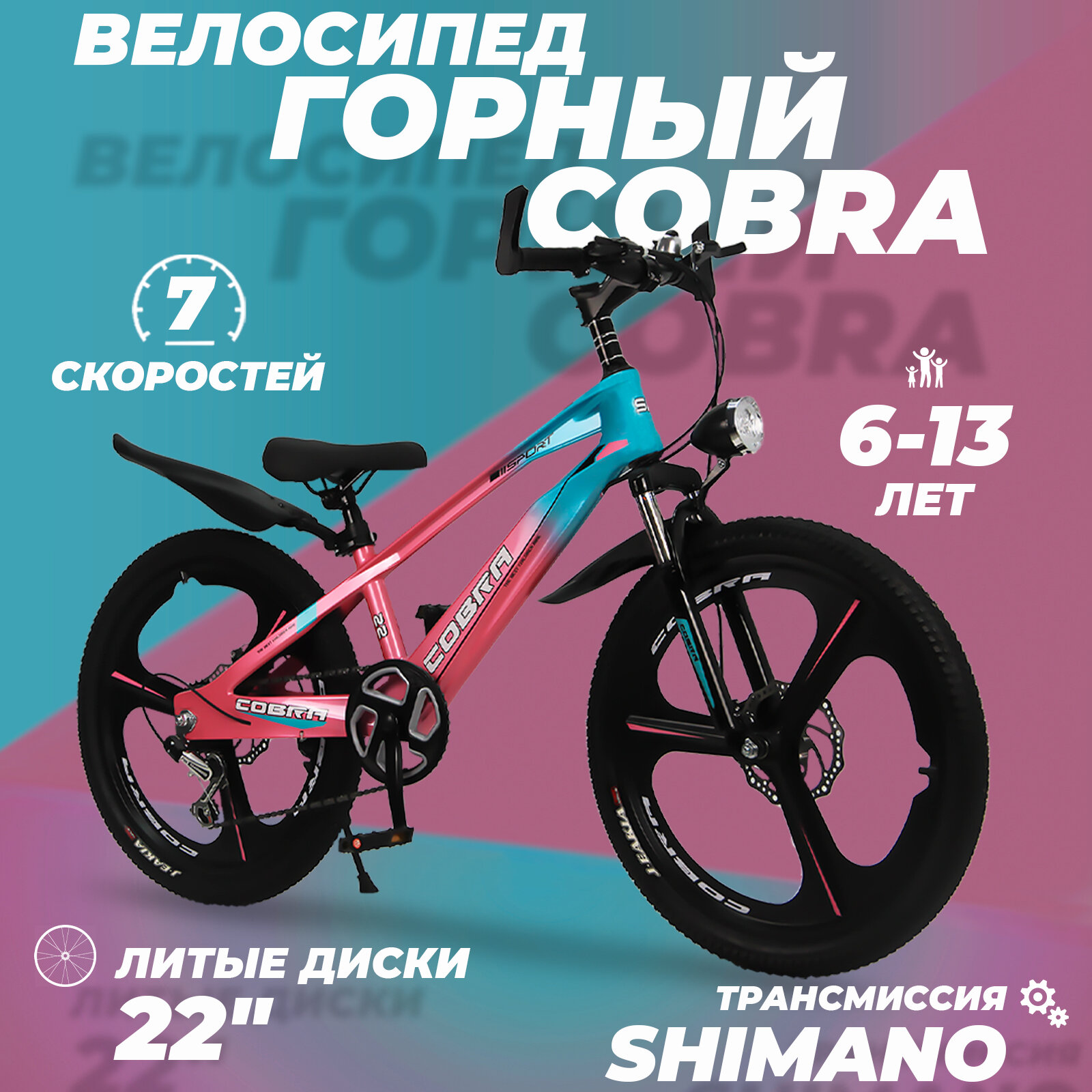 Купить Велосипед детский скоростной Cobra 22" розовый, 6-13 лет, 7 скоростей, фара в комплекте