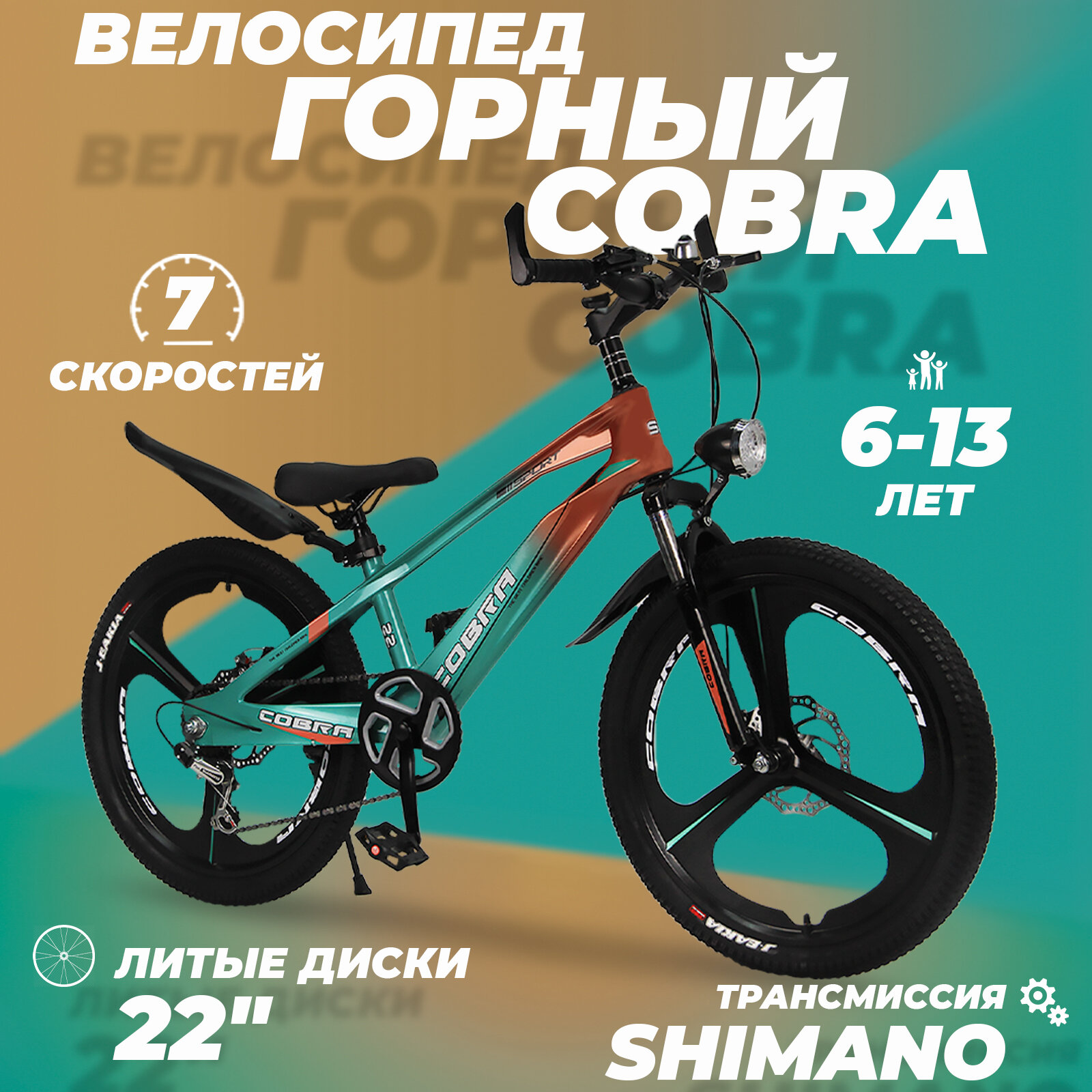 Ниже Вы можете прочитать отзывы на Велосипед детский скоростной Cobra 22" зеленый, 6-13 лет, 7 скоростей, фара в комплекте, ознакомится с подробными характеристиками, посмотреть интересные обзоры и фотографии на Велосипед детский скоростной Cobra 22" зеленый, 6-13 лет, 7 скоростей, фара в комплекте.