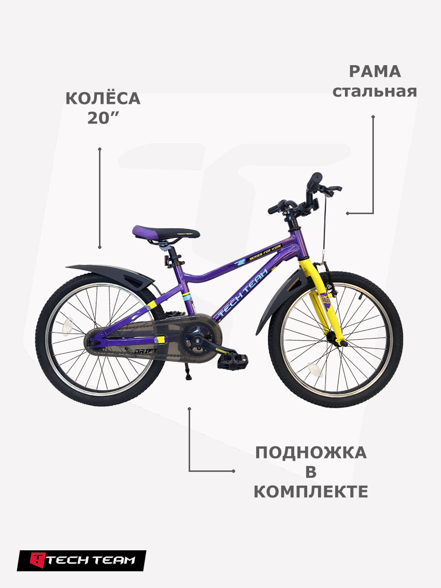 Велосипед детский Tech Team Drift 20" алюминиевый сплав, фиолетовый 2024 интересное: