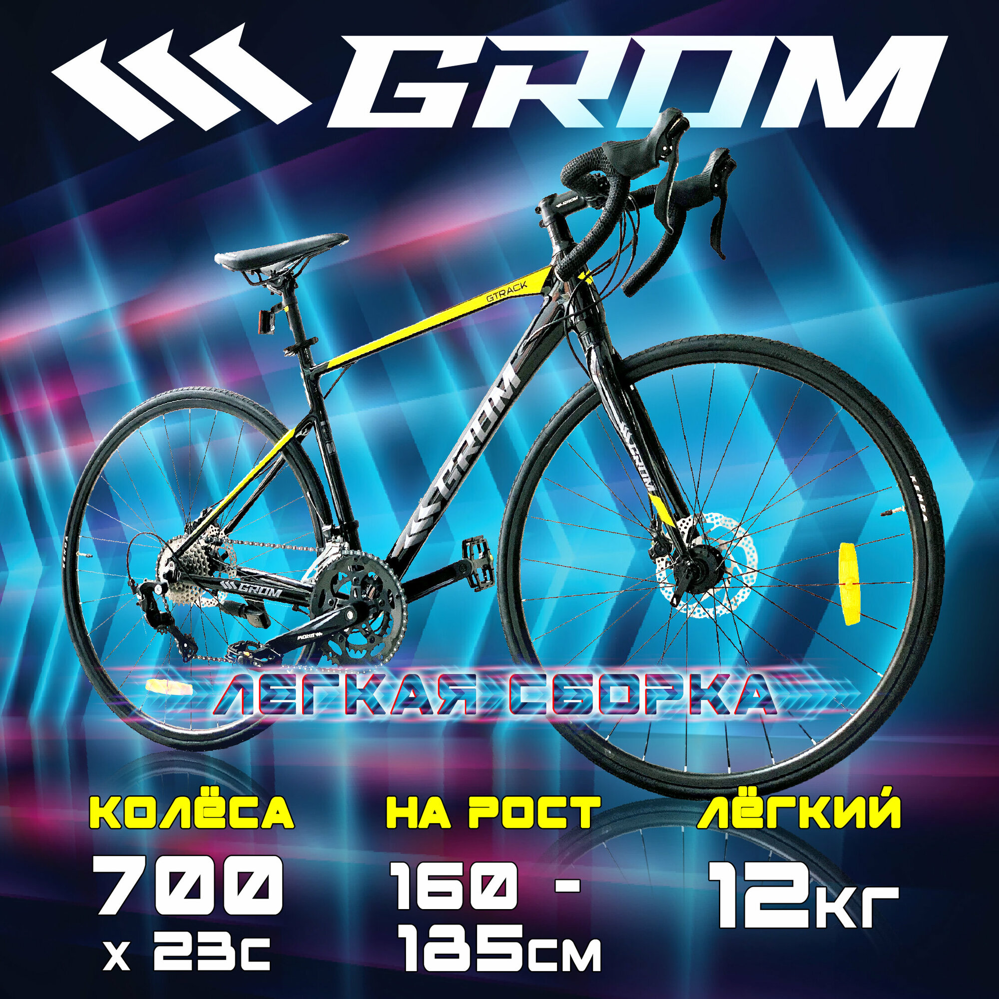 Шоссейный велосипед GROM LEXON GTRACK 700C 28' черный/салатовый / женский и мужской, городской для взрослых / спортивный, скоростной велик интересное:
