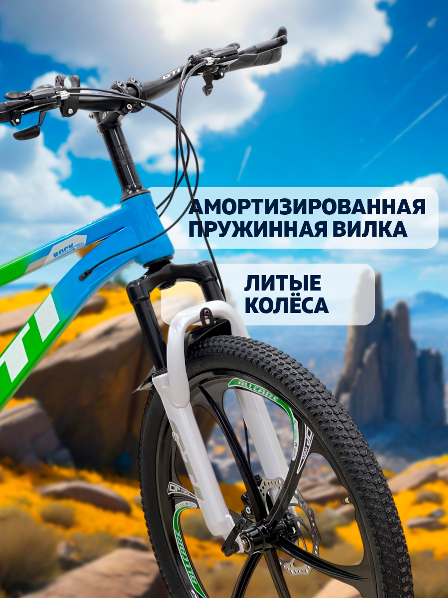 Горный велосипед SUN 21s-6 24", стальной, 21-скоростной, с дисковыми тормозами